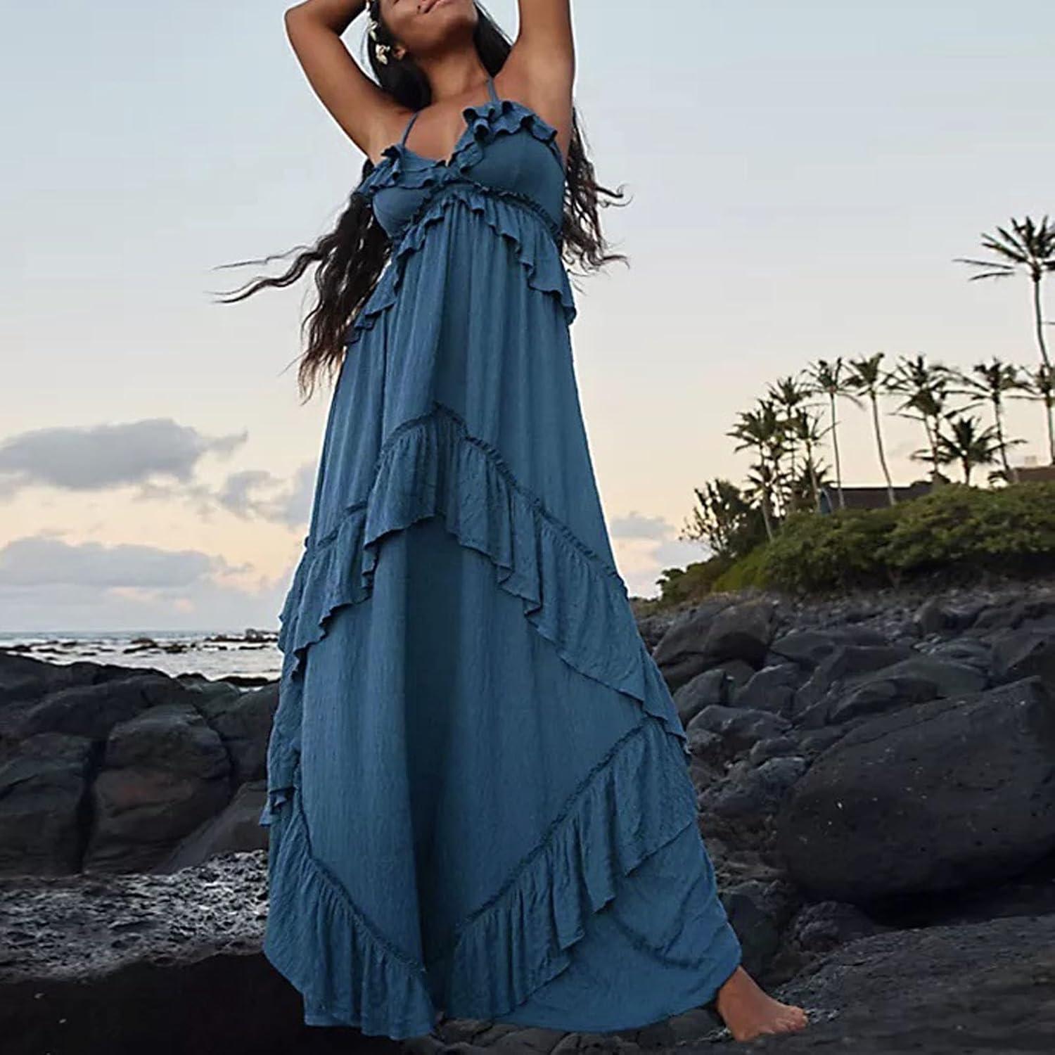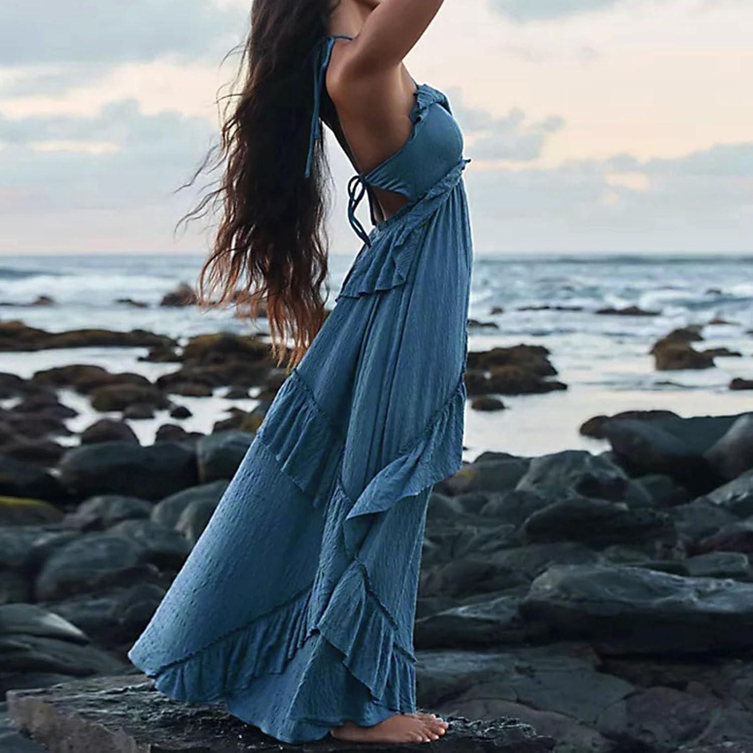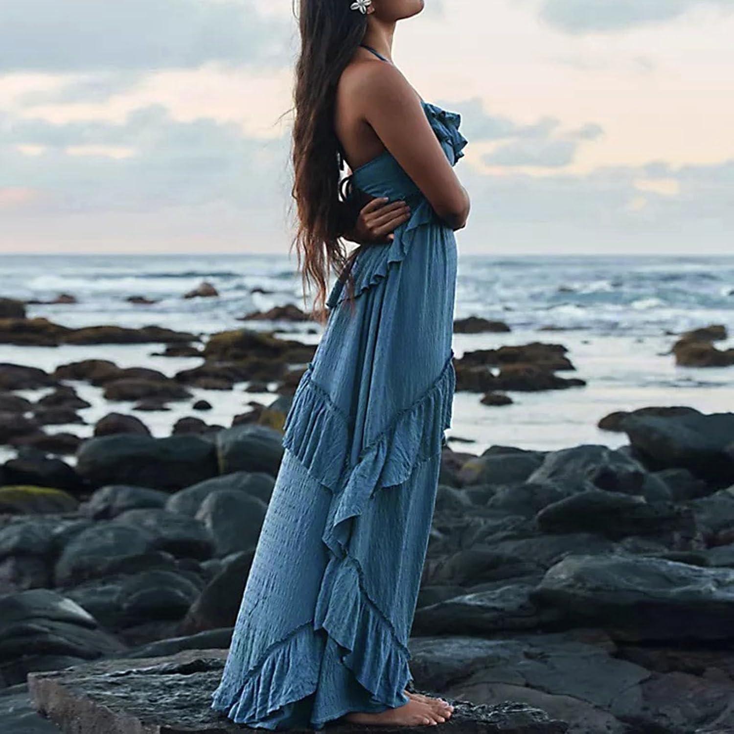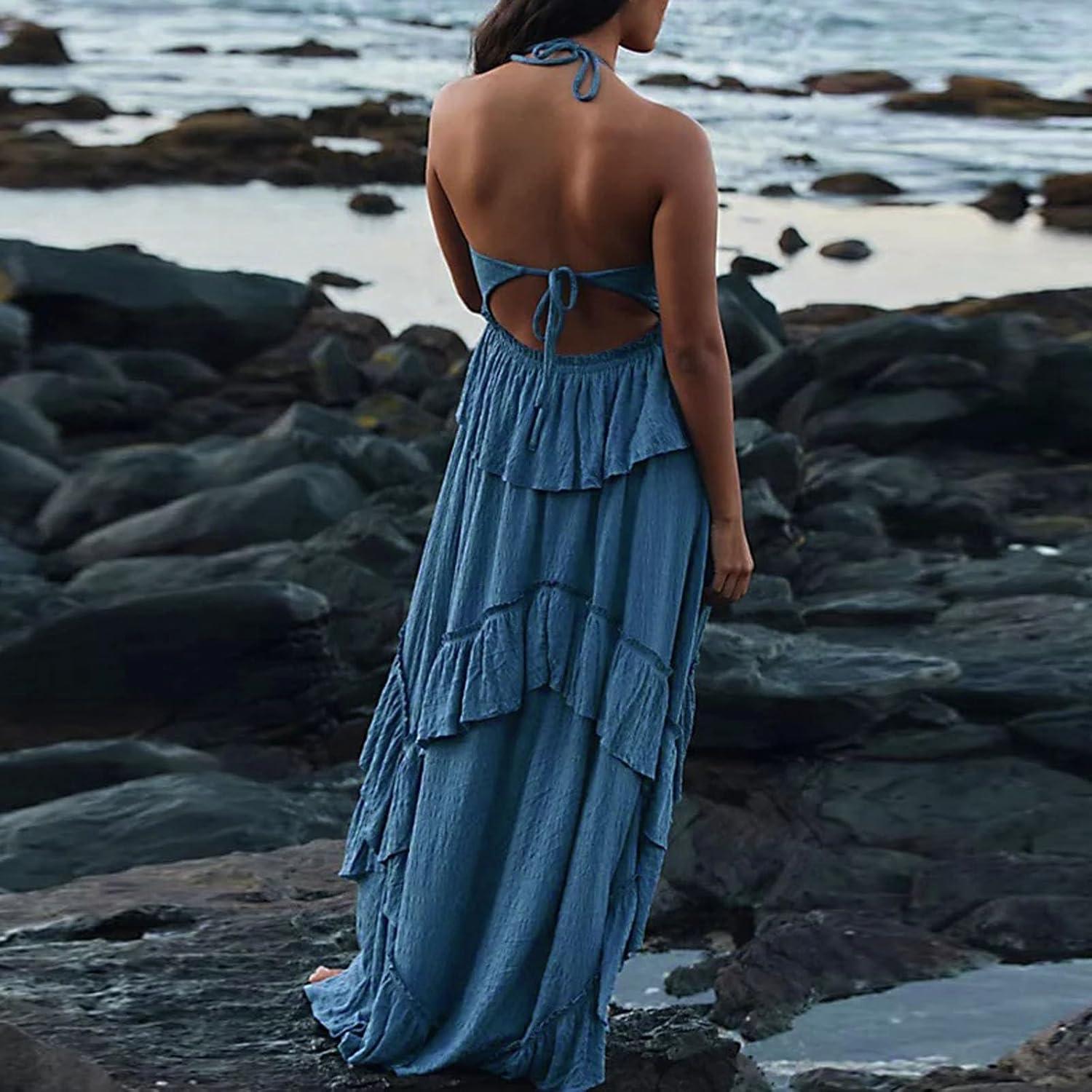 FEORJGP Boho Midi Dress: Summer Style with a Backless Twist