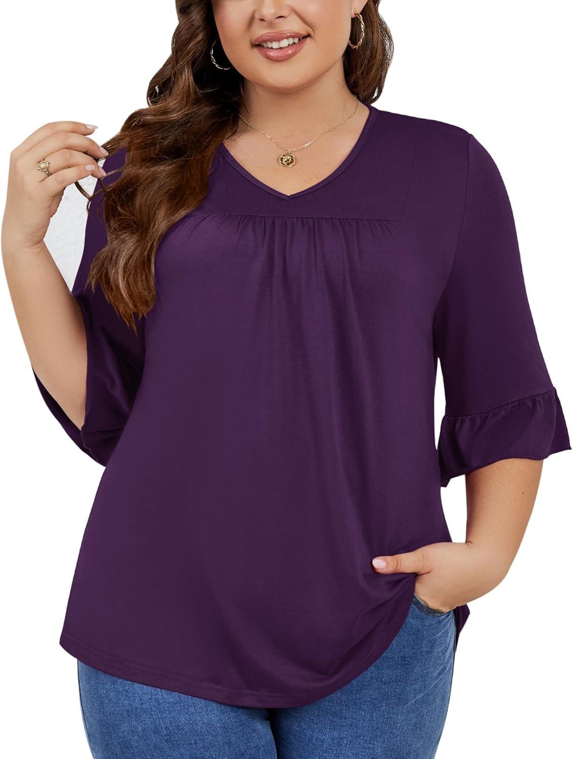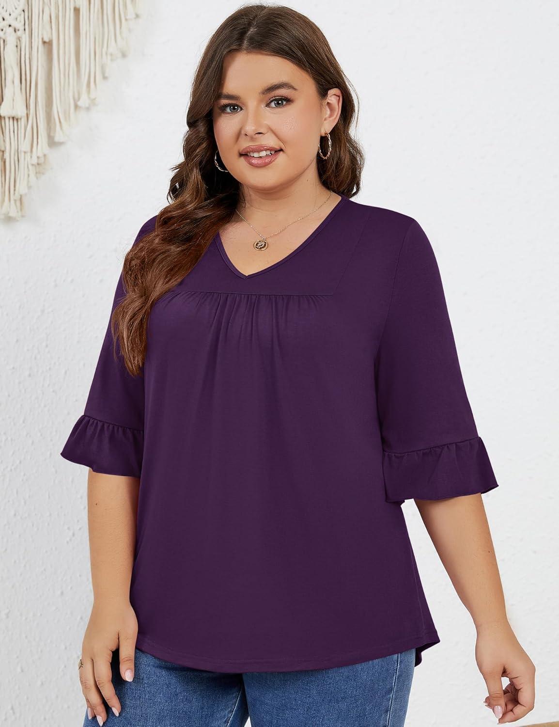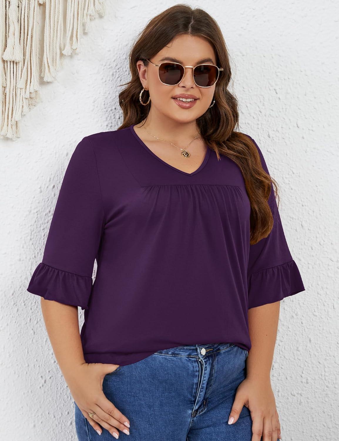 we find this top to be a wonderful ​blend of comfort and versatility, catering perfectly‌ to plus size⁤ wardrobes. Its soft, breathable fabric is lightweight yet substantial enough‌ to feel high-quality, ensuring all-day comfort ⁣without the clinginess often found in similar styles. The 3/4​ ruffle bell sleeves and pleated V-neck ⁢add⁤ a flattering, feminine touch that elevates casual wear to something a bit more ⁣special. Whether we’re dressing up for​ a‍ casual outing or aiming‍ for a⁤ polished office look, this piece transitions effortlessly across occasions. The loose fit and stretchy material make it a ​forgiving‍ silhouette that embraces‌ curves ⁣elegantly without sacrificing⁤ style.