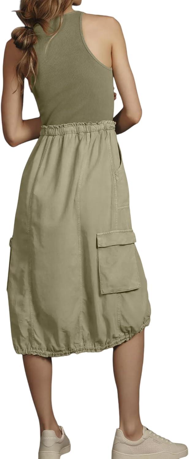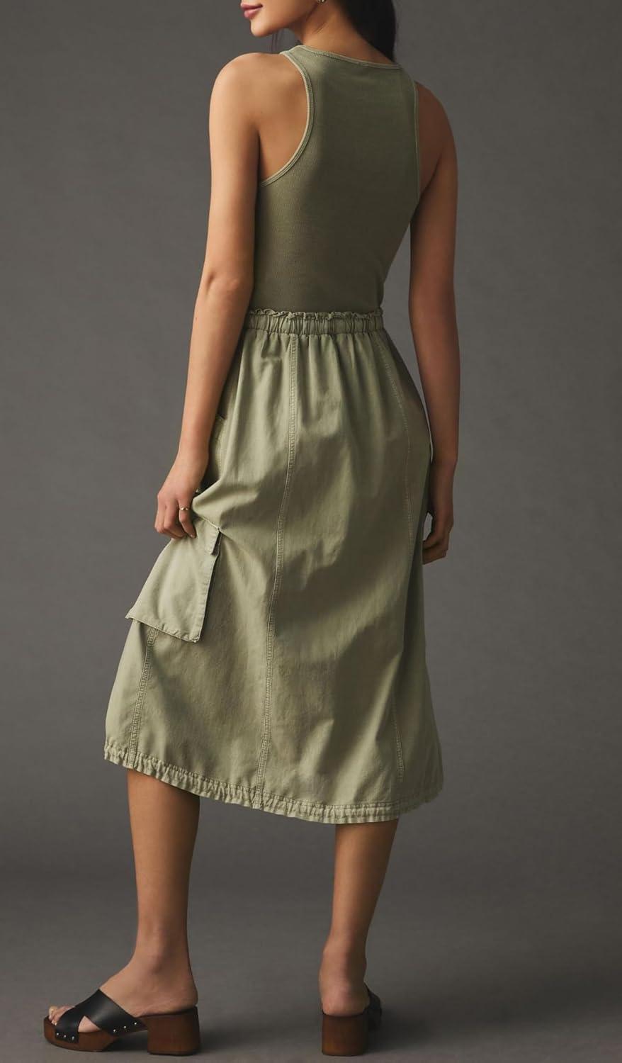 | Functional pockets including a front patch and side cargo pockets add practicality without bulk | The midi length isn’t ideal for all heights, sometimes requiring careful shoe pairing |
