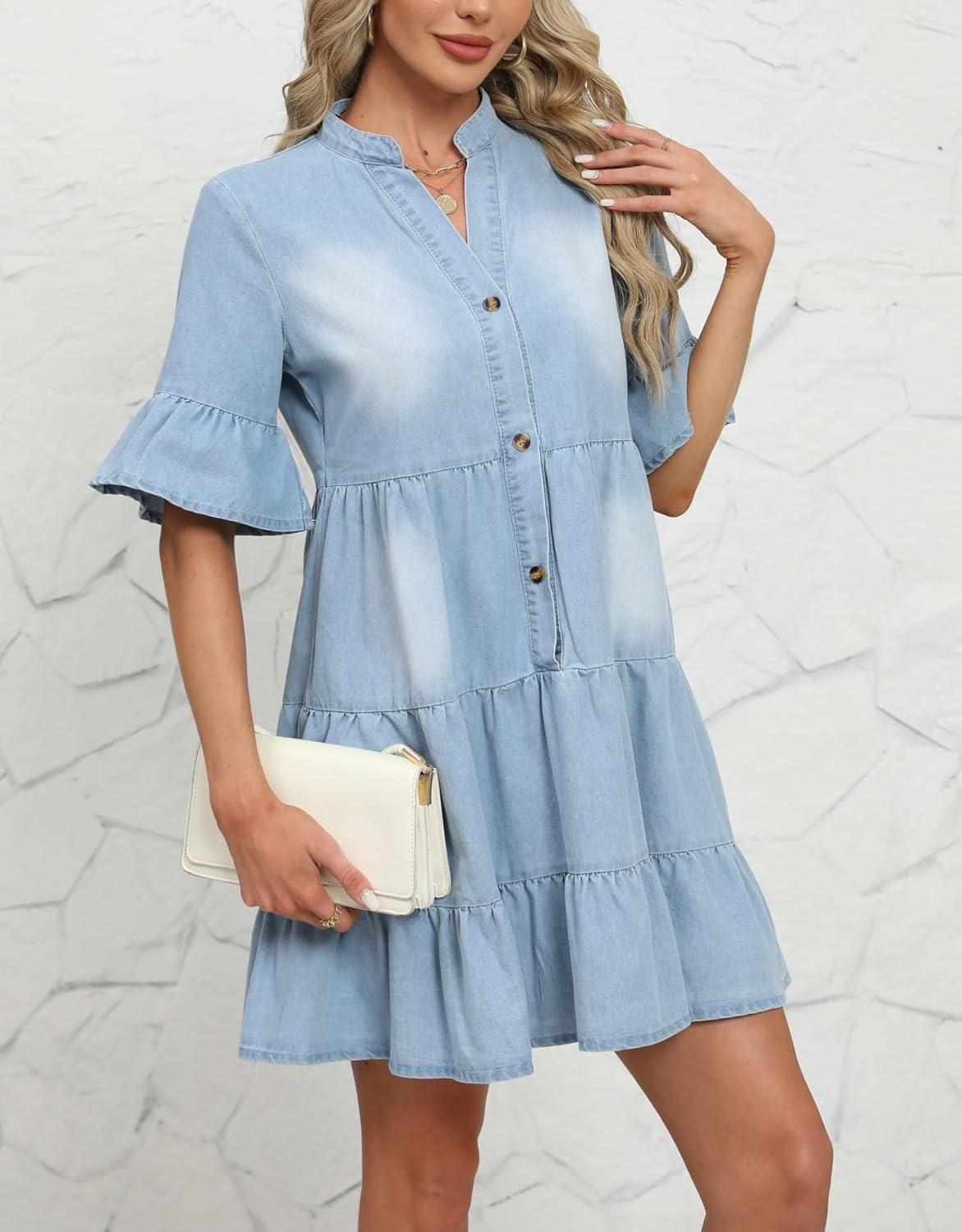 After spending quality time with this summer ​denim dress, we ⁤can ‌confidently say it strikes a great balance ⁤between comfort⁣ and style. The soft yet durable⁤ denim fabric feels breathable enough for warm weather, while⁢ the loose babydoll cut flatters various body shapes by gracefully hiding the tummy area. ⁢We especially appreciated the ruffled hem and the subtle​ high-low design, which add ‌a breezy, feminine flair perfect for casual outings or weekend getaways.⁤ The button-down front and V-neck⁣ create⁢ a chic, effortless vibe, making it easy to dress up or down depending on the occasion.