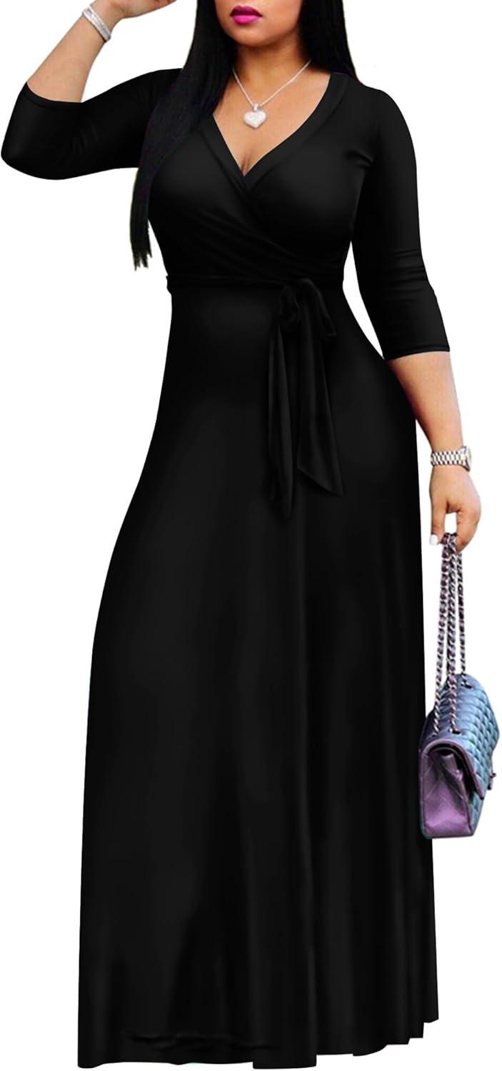 This dress truly shines with its effortless blend of comfort and bohemian flair. The V-neckline and 3/4 sleeves create a flattering silhouette that feels feminine without sacrificing ease of movement.The tie waist adds a subtle shape-defining touch,making it especially great for curvier figures who want to highlight their natural curves gracefully. We appreciate how the floor-length hem flows beautifully, enhancing its breezy, summery vibe perfect for various occasions-from beach days and casual outings to more dressy events like cocktail parties or even weddings. Its solid color design means it’s a versatile base for accessorizing, allowing you to dress it up or down according to mood and setting.