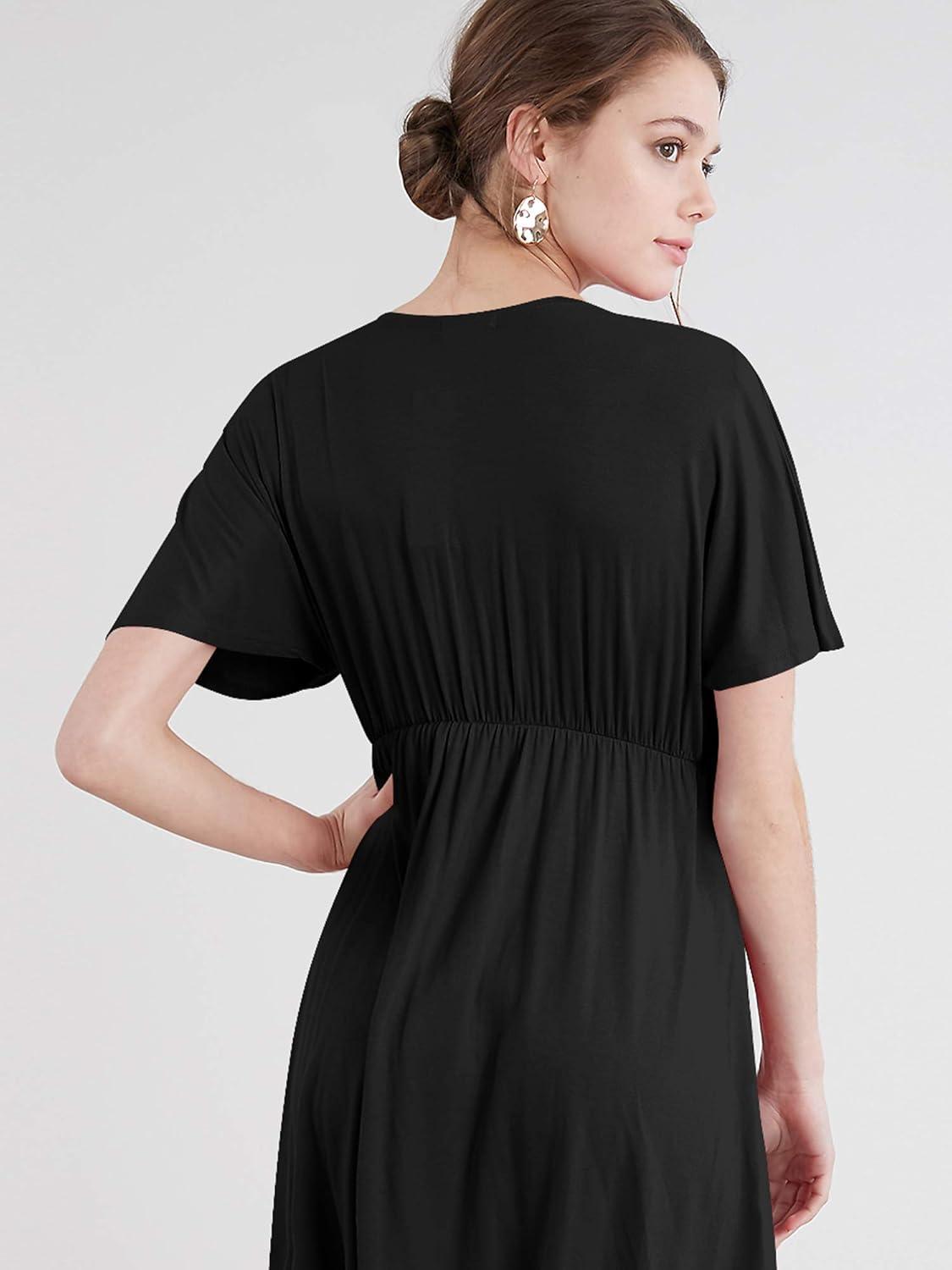When it comes to comfort, the airy fabric of this summer dress truly stands out.The kimono-style sleeves provide a relaxed fit that doesn’t restrict movement, making it perfect for warm days when breathability is key. We found the soft material gentle against the skin, which adds to the overall ease of wearing it all day. The deep V neckline enhances the design without sacrificing comfort, offering a flattering silhouette that feels effortlessly casual yet stylish.