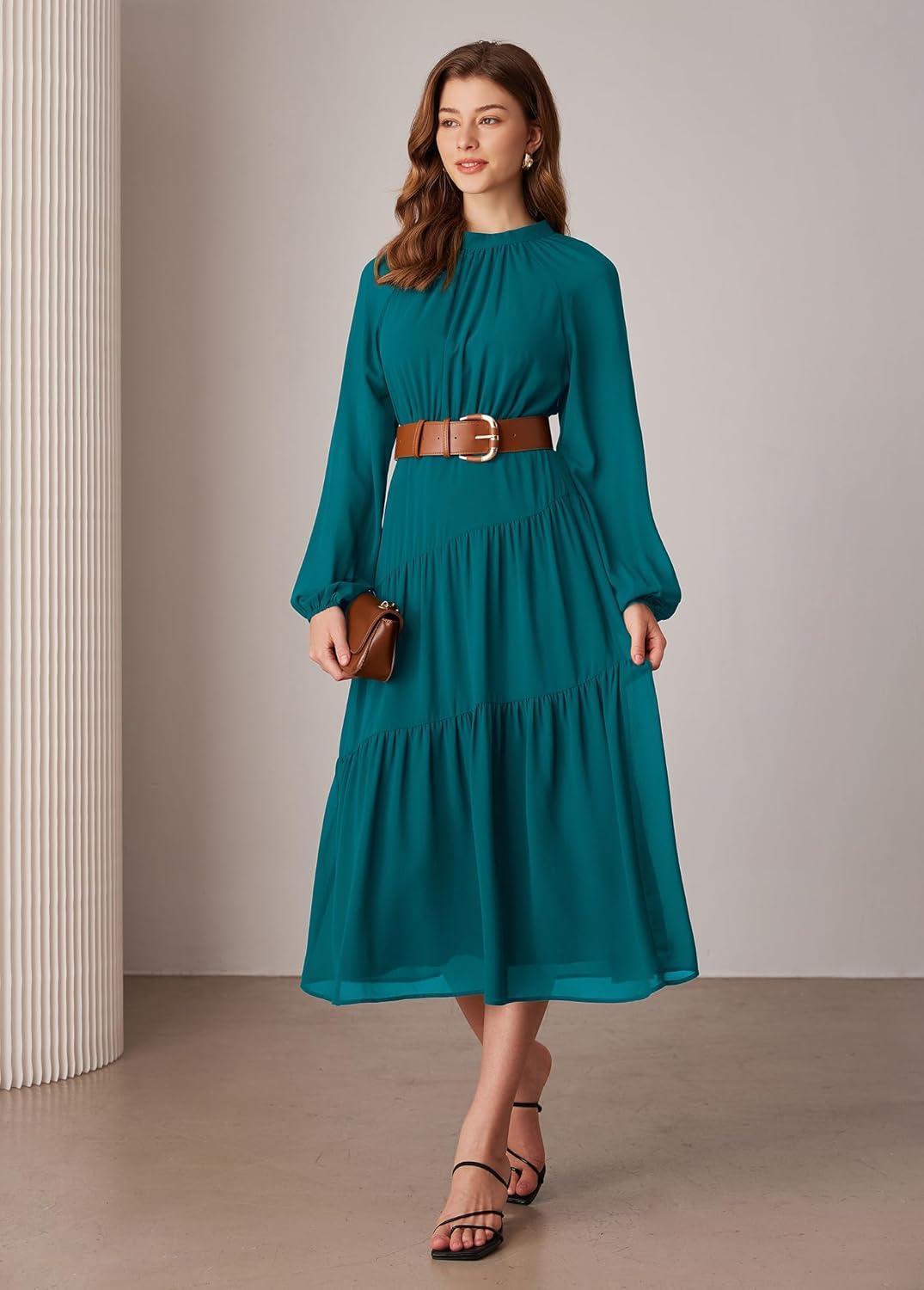 This dress perfectly captures the essence of fall​ fashion with its elegant lantern sleeves and a flattering empire waist that beautifully accentuates the silhouette. the tiered A-line design creates a flowy midi length that moves gracefully,making it an ideal choice​ for both casual and semi-formal occasions. Crafted from lightweight⁢ fabric, it offers comfort without compromising on style, while the ruched detailing adds subtle texture ⁤and dimension. Its versatile ​crewneck pairs effortlessly with ⁣accessories, and though‍ the included belt is ​not part of the package, adding one ‌can easily elevate the look further.