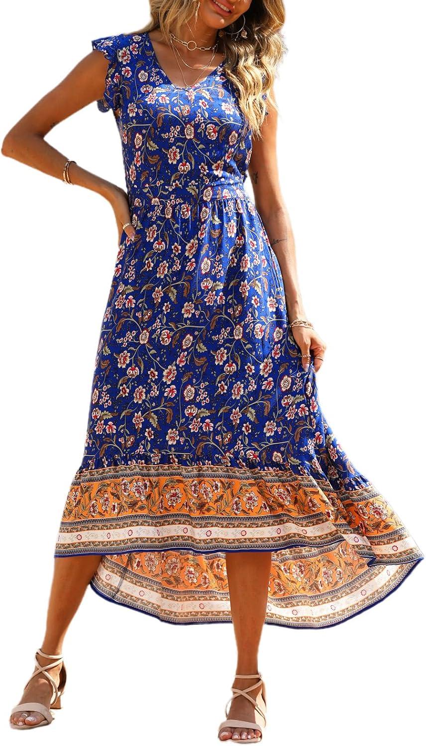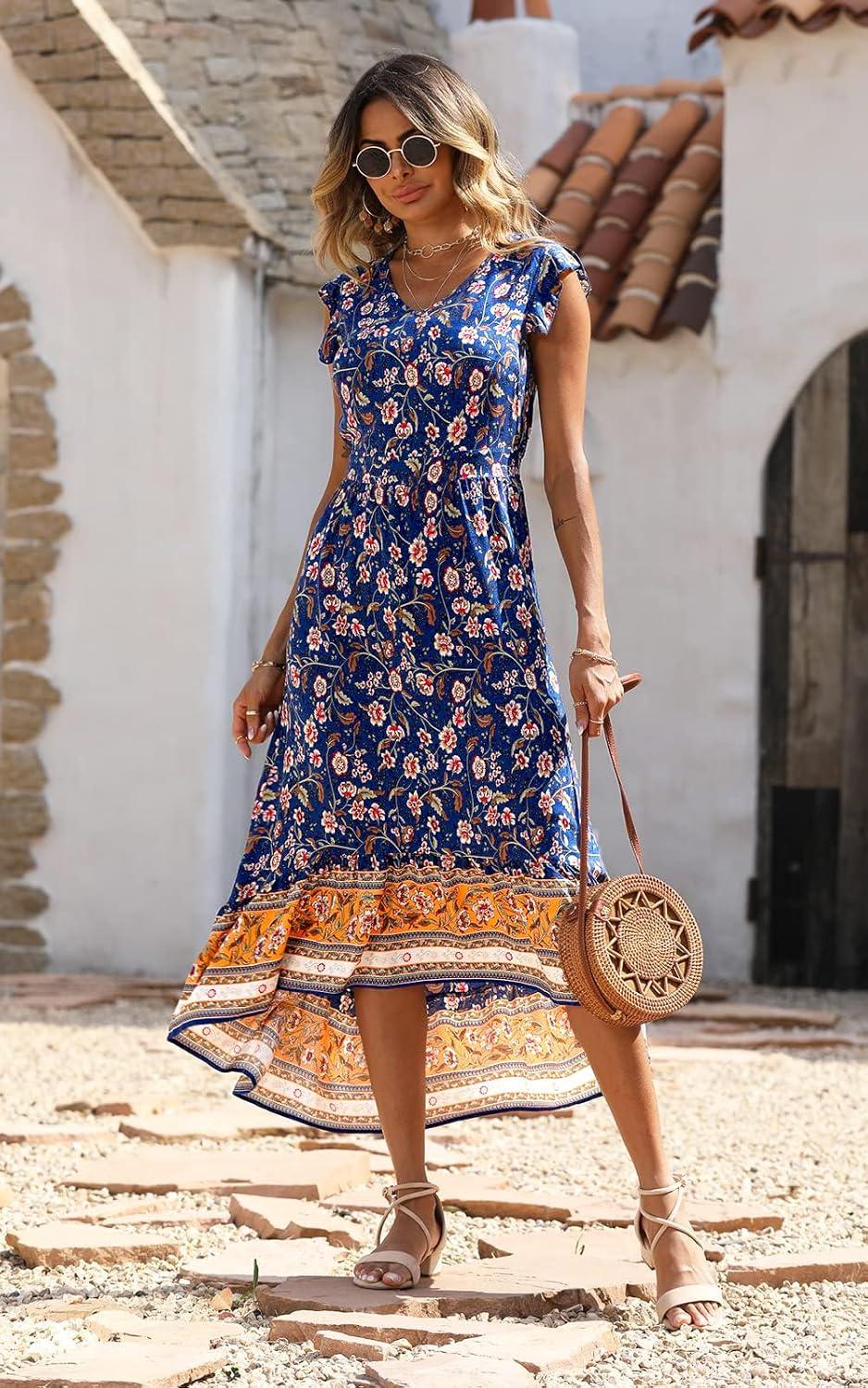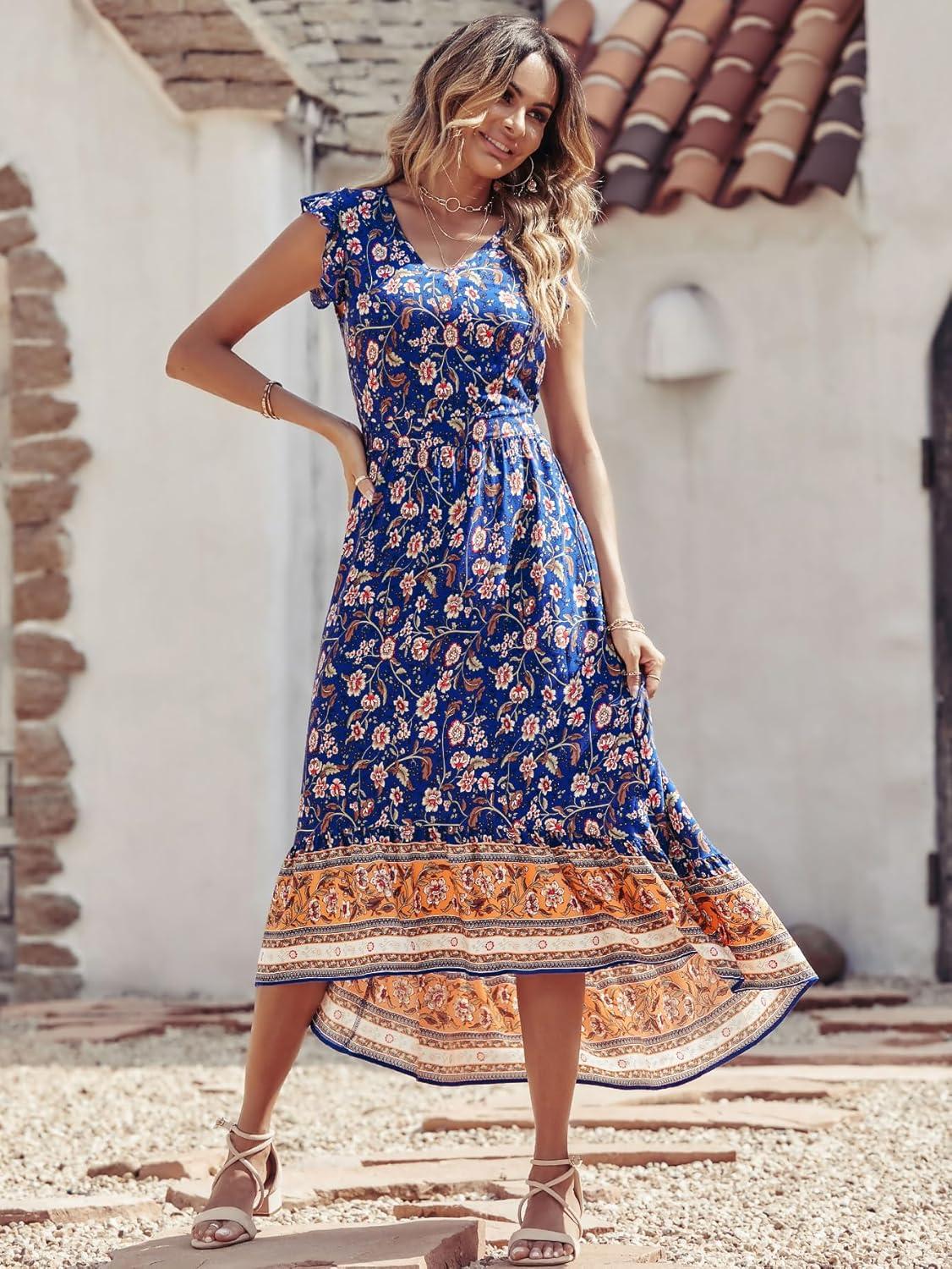 after spending time with this dress,we appreciate how effortlessly it blends comfort with style. Its elastic high waist and flowing high-low hem create a flattering silhouette that suits a variety of body shapes. The breathable, lightweight fabric makes it our go-to choice for warm days, while the classic V-neck gracefully highlights the collarbone without feeling too revealing. the boho floral print adds a vibrant touch that keeps the look fresh and energetic – ideal for casual outings or even semi-formal summer events. Additionally,the cap sleeves and midi length make it versatile enough to wear from beach strolls to garden parties without missing a beat.