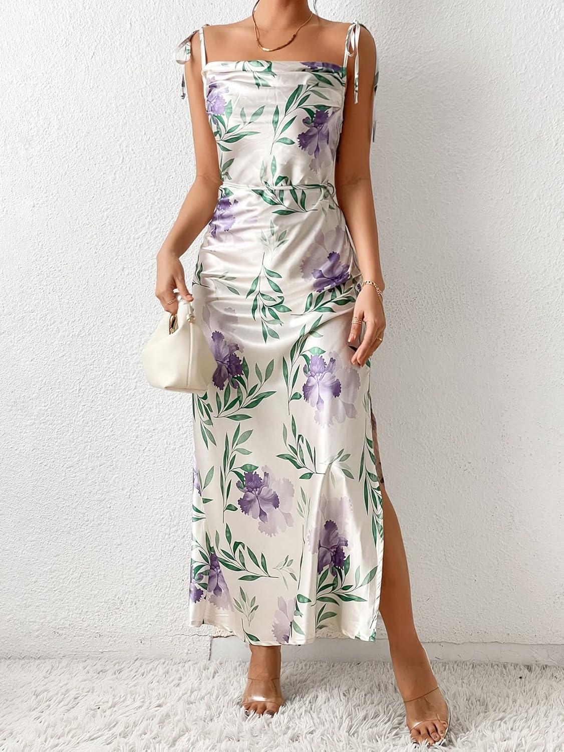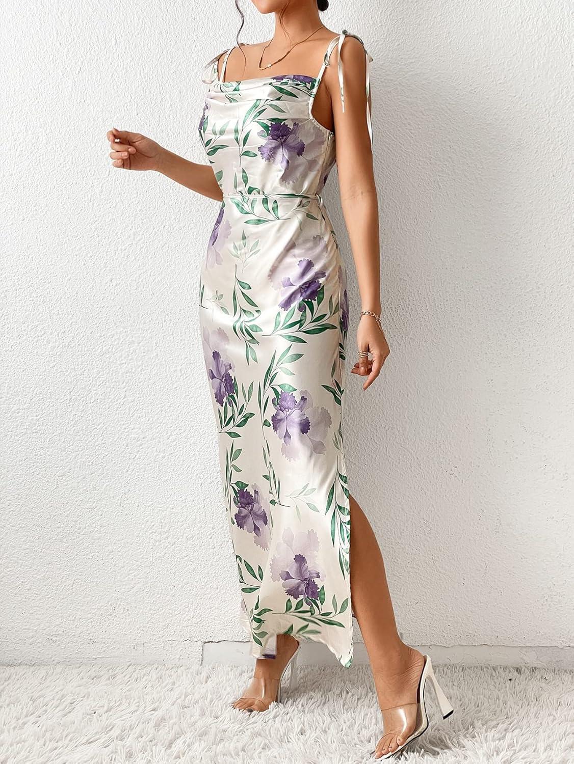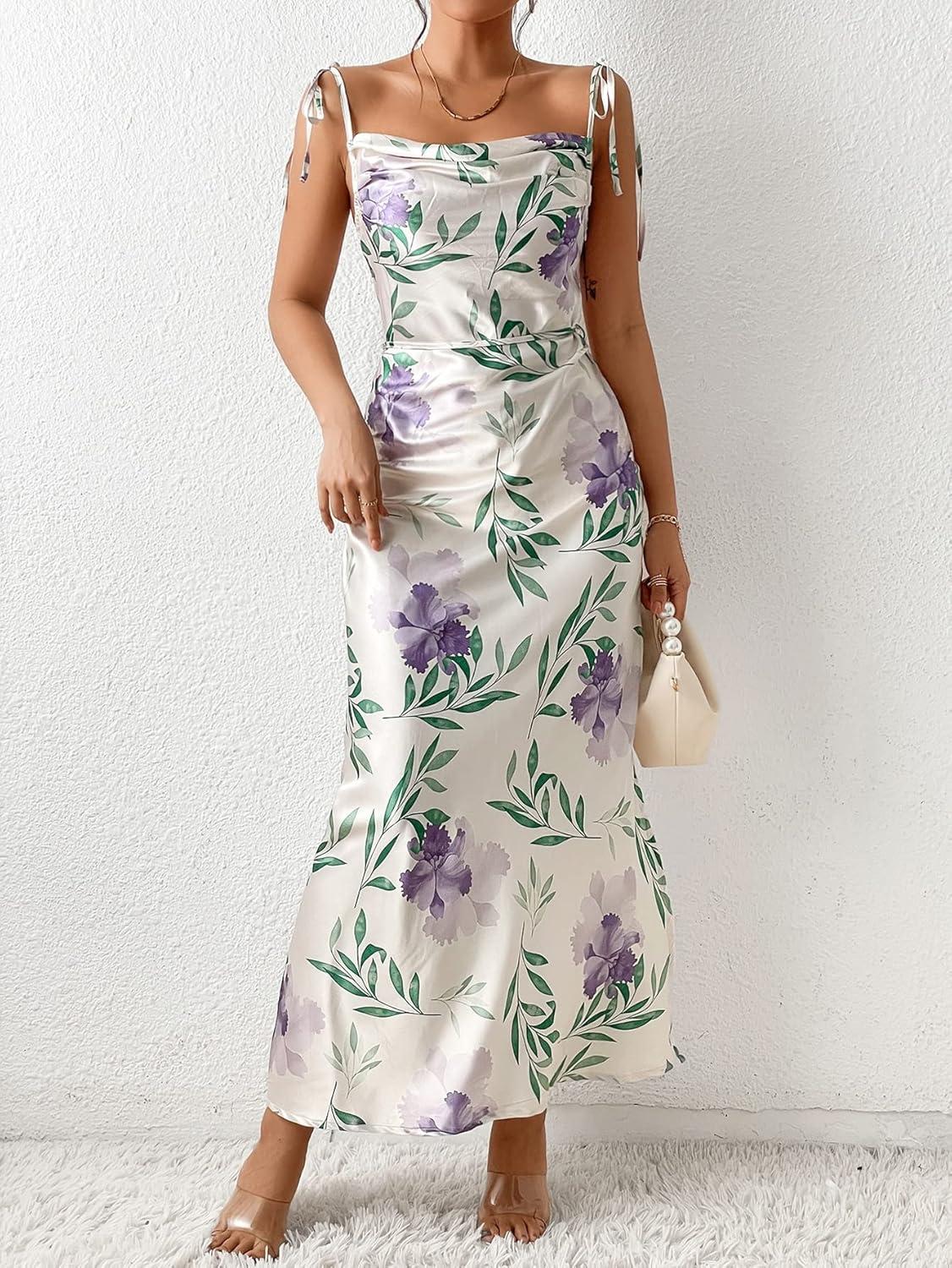 When we first examined the design, the charming floral print immediately stood out, showcasing a delicate artistry that effortlessly blends elegance with a casual vibe. The tie shoulder detail adds a playful yet refined touch, allowing some adjustability for a customized fit. Crafted with a high waist and mermaid hem, the silhouette flatters various shapes while maintaining an air of sophistication. The spaghetti straps complement the sleeveless cut beautifully, keeping the overall style light and airy – perfect for warm days or layered looks.