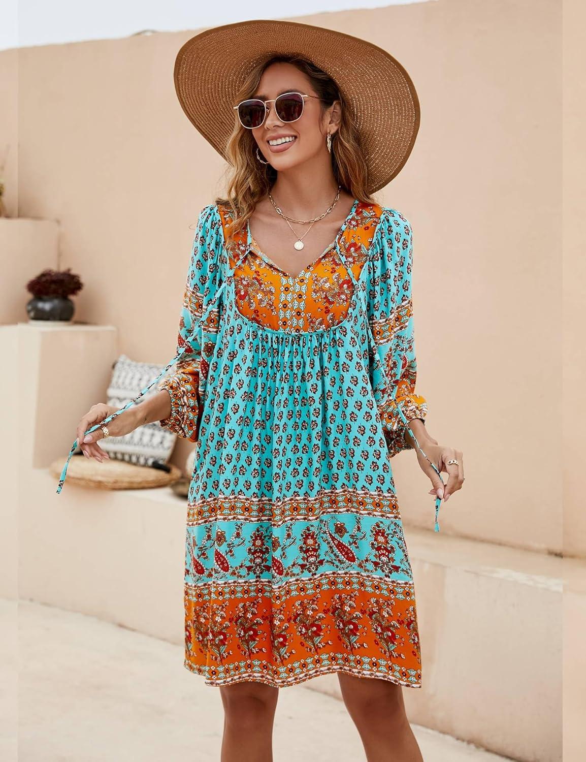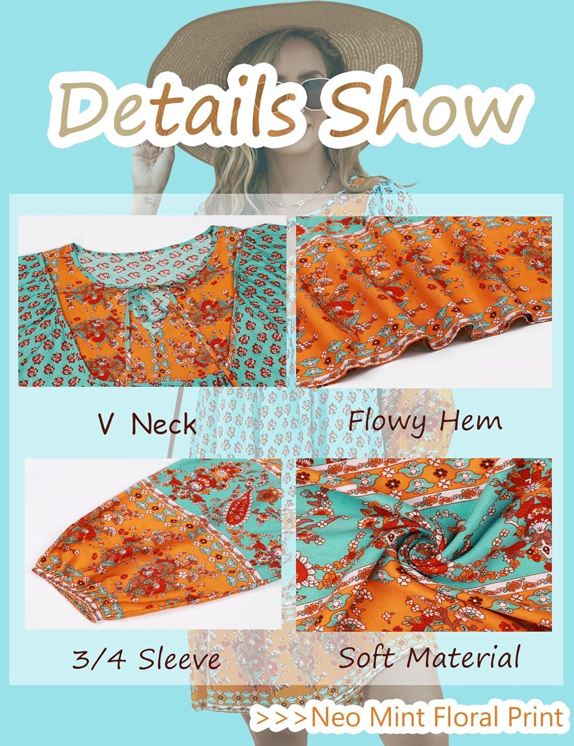 At first glance, this summer dress strikes a perfect balance between comfort and style with its bohemian vibe and flowy silhouette. The soft, high-quality fabric feels gentle against the skin and is impressively breathable, making it an ideal choice for warm weather.The 3/4 sleeves and V-neck design add effortless elegance, while the babydoll cut allows for a relaxed fit that moves beautifully with every step. We especially appreciated the charming floral print, which lends a fresh, playful feel without overwhelming the overall look.