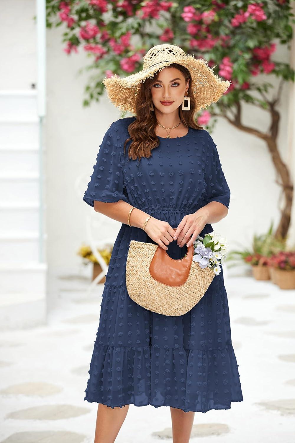 We recently had the chance to try on the IN’VOLAND Plus Size Women’s Short Sleeve Midi Dress in Navy Blue, and we’re excited to share our thoughts. This summer-ready babydoll dress caught our eye with its delicate Swiss dot detailing and flowy chiffon fabric, promising both comfort and style. Designed specifically for plus size silhouettes, it aims to offer a flattering fit without compromising on breathability or ease of movement.Over the past few days, we put it through various real-life scenarios-from casual outings to more dressy occasions-to see how it performs in comfort, fit, and overall vibe. Here’s what we discovered about this charming midi dress.