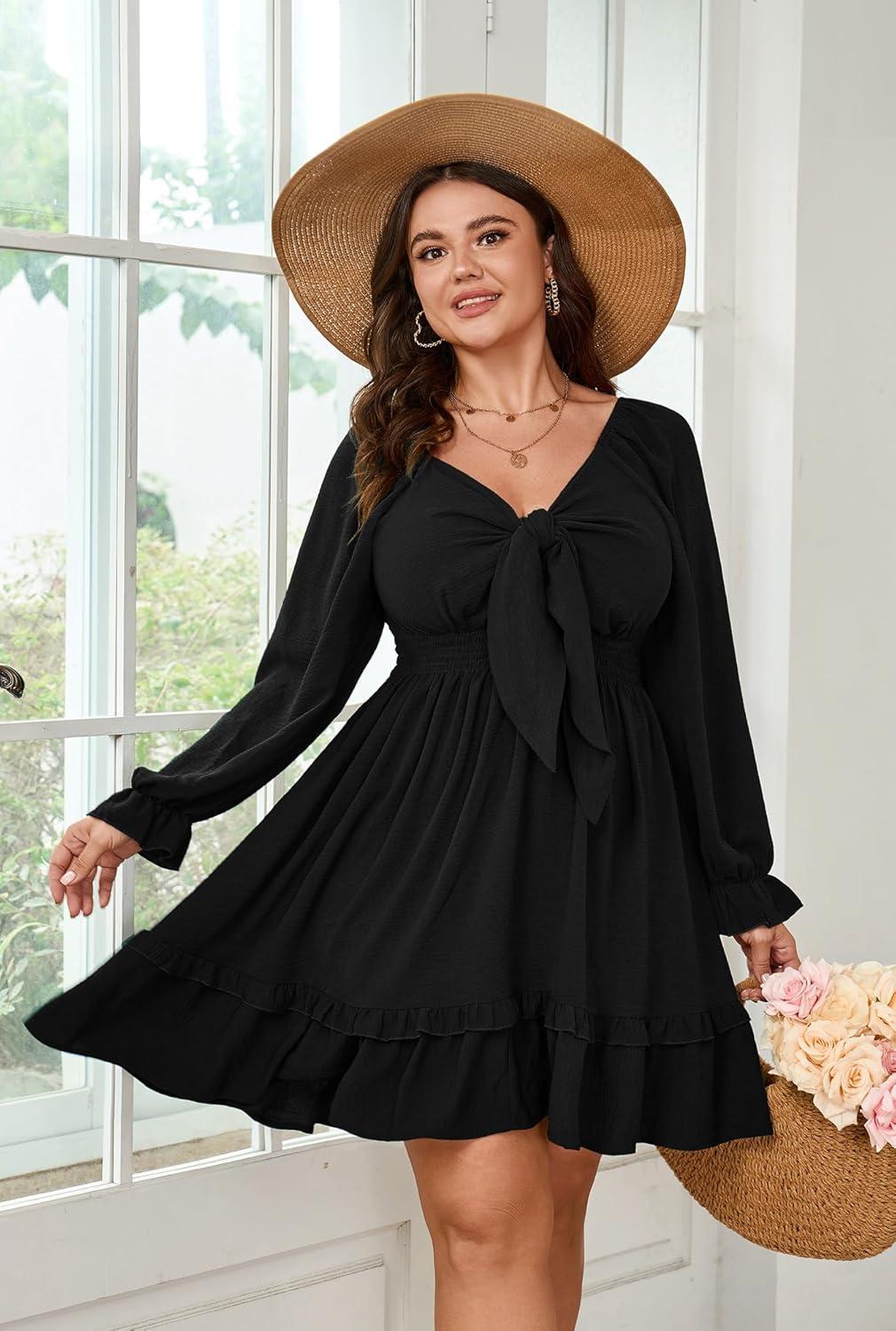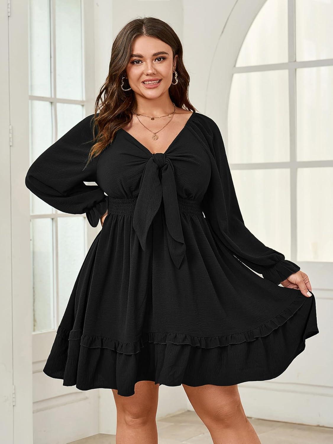 Flowy Plus Size Dresses with Ruffles and Tie Front Style