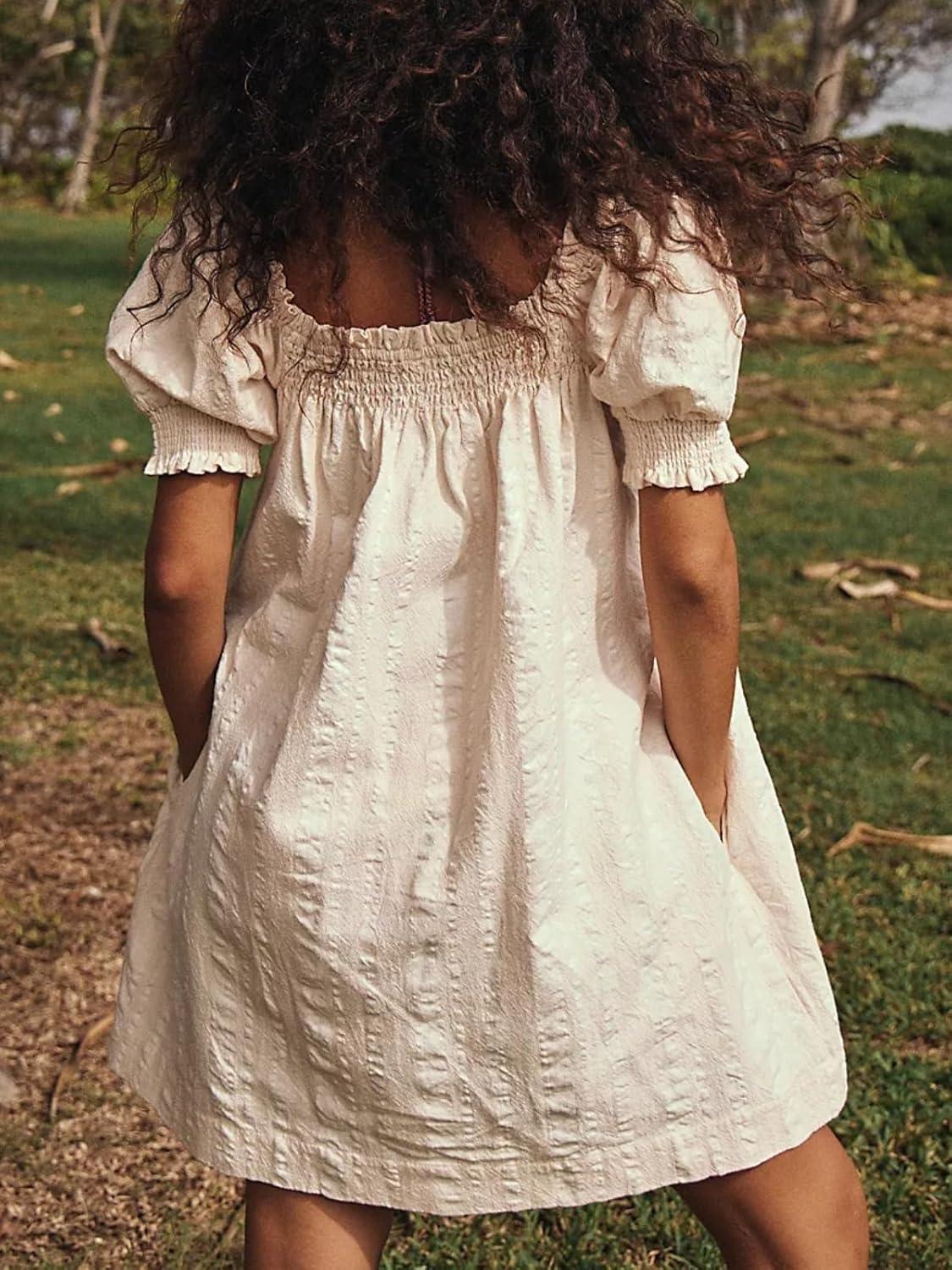 the puff sleeves are not just a visual delight but a clever design feature that elevates both the style and functionality of this dress. They create a soft, voluminous silhouette that adds a subtle vintage flair without overwhelming the overall look. This gentle puff enhances the square neckline, beautifully framing the shoulders and collarbone, offering a flattering shape that suits a variety of body types. The sleeves strike the perfect balance between structured and breezy, making the dress feel effortlessly feminine while maintaining enough freedom of movement to stay agreeable during warm summer days.