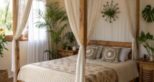 Furniture often includes low seating, rattan chairs, woven poufs, and colorful textiles, complemented by abundant greenery. Handcrafted decor and artisan pieces add a worldly, cozy feel. Warm lighting, such as string lights or soft lamps, enhances the inviting atmosphere. Boho style encourages personal expression without the pressure of perfection.