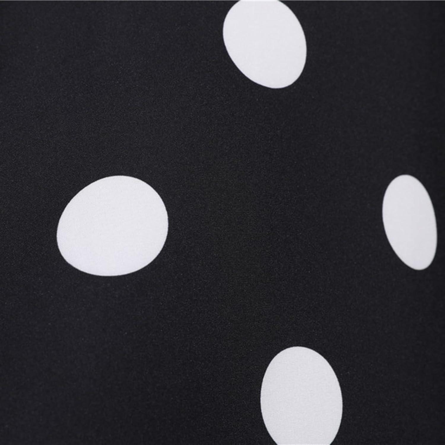 The polka dot pattern on this dress is a timeless classic that effortlessly adds a playful yet elegant touch to our wardrobe. The evenly spaced dots create a dynamic visual rhythm that stands out without overwhelming, perfect for those who appreciate vintage-inspired fashion with a modern twist. The black and white color palette is especially striking, offering a versatile base that pairs wonderfully with a variety of accessories. This monochromatic scheme not only highlights the lapel and the short sleeves but also accentuates the swing silhouette, making it flattering and eye-catching for any occasion.