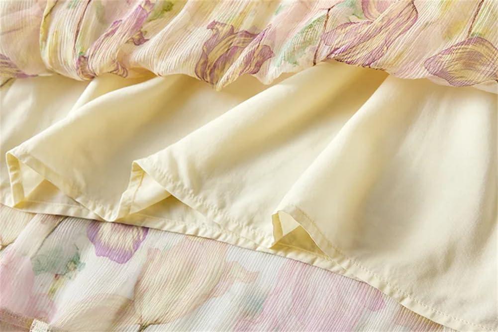You pull ‍on Generic’s 100% Mulberry Silk Ruffle Dresses for Women V Neck Print Maxi Dress — the Mulberry Silk‍ Ruffle Maxi — ⁤and the‌ silk⁢ slides cool against your⁣ skin,smooth and quietly tactile. Standing still, the dress settles‌ into a soft A-line, ruffles barely stirring and seams ⁣lying ‌flat so the fabric reads as one continuous surface. ‍As you walk, the ‍skirt moves with a slow, measured swing, catching light ‌in ⁣a faint ⁢sheen that ⁤signals some visual weight without⁢ feeling heavy. Sitting, the hem pools easily at your ankles and the‍ whole piece feels lived-in from‌ the first moments: ⁢fluid, ‌intentional, and‍ quietly present.