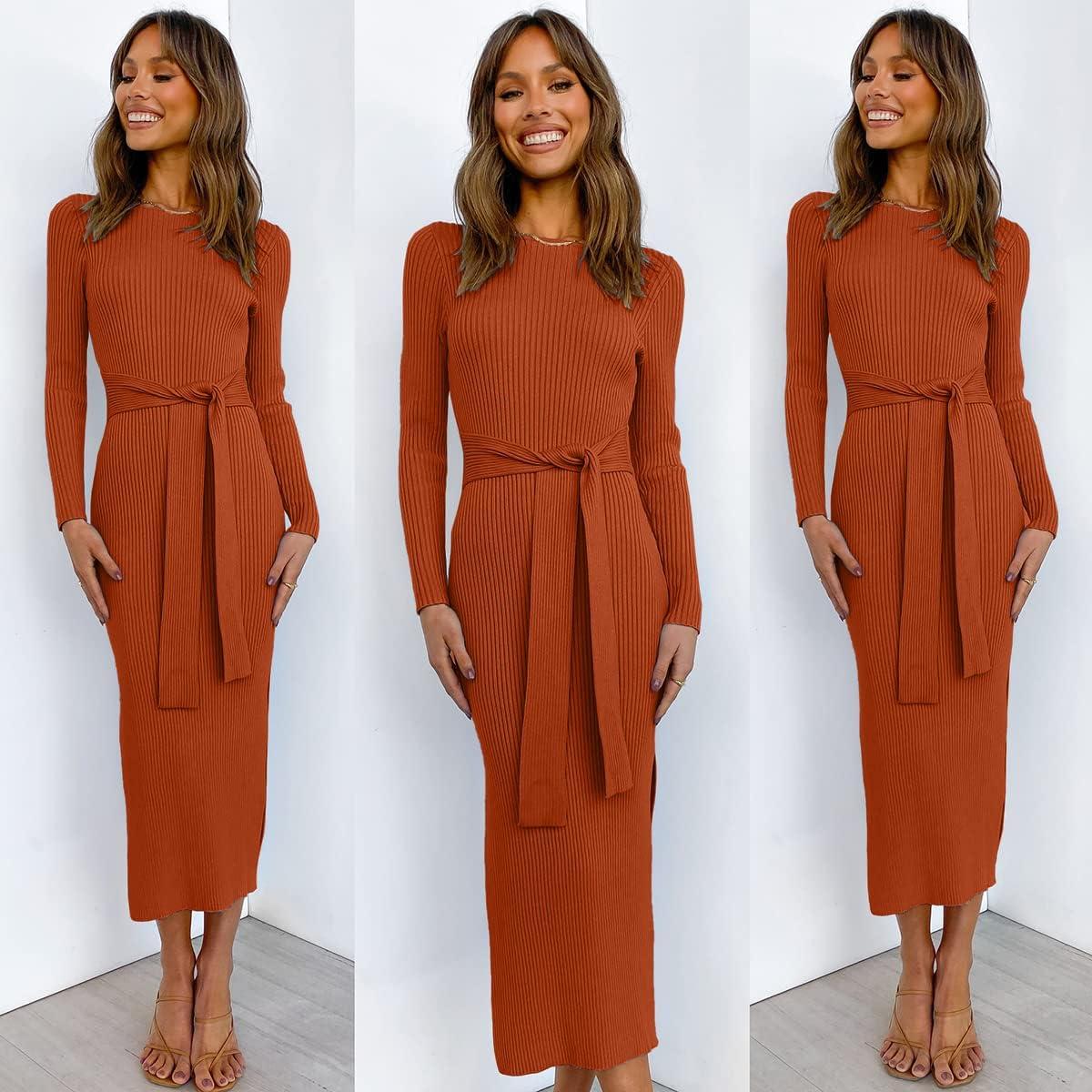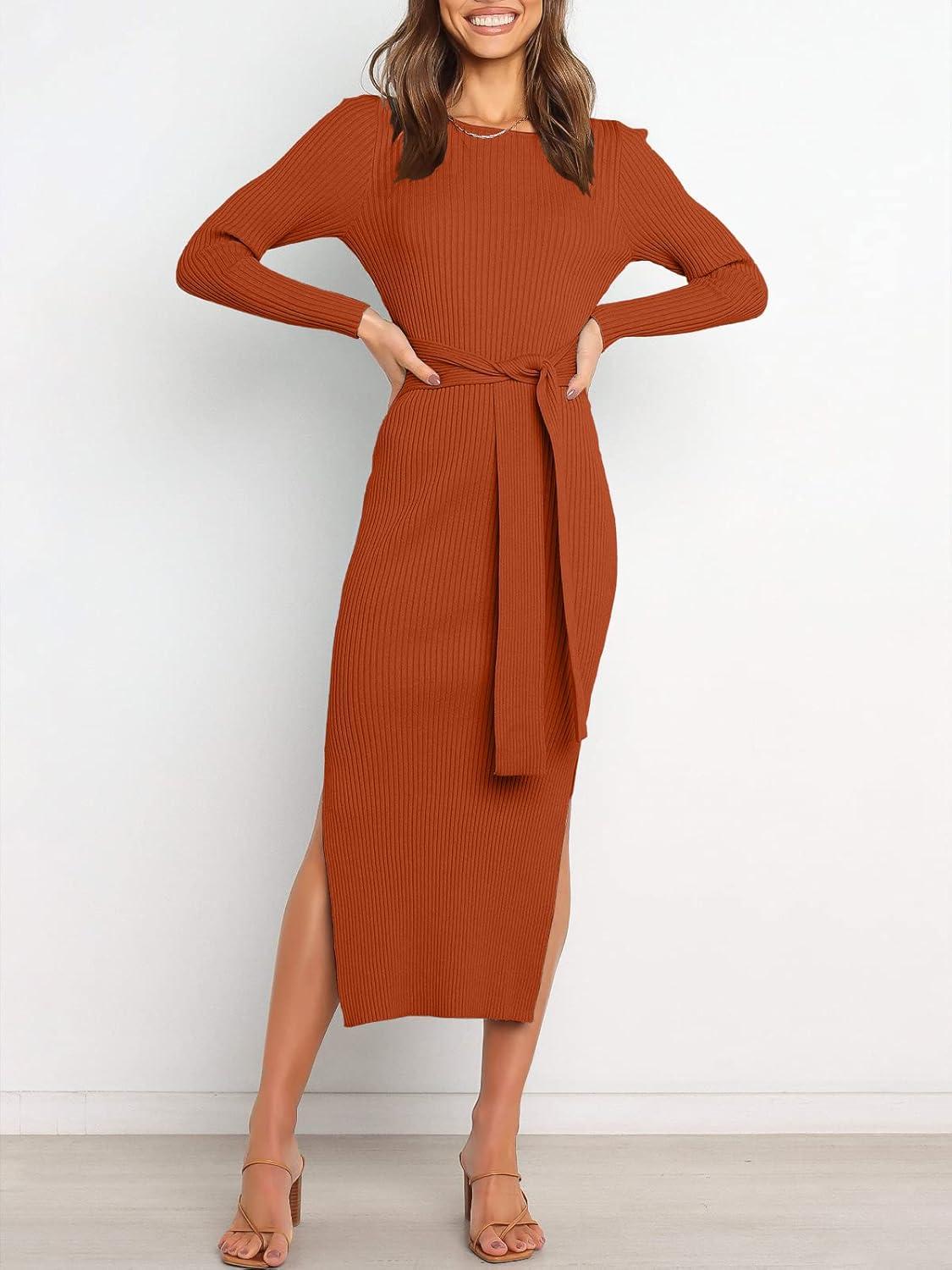 We ⁤found‍ this ribbed knit midi ⁢dress to be⁤ a versatile and stylish option for fall wardrobes. Crafted from a soft blend of viscose,⁣ nylon, and polyester, it offers a comfortable stretch‍ that hugs the​ body without feeling restrictive. The crew neck and long⁢ sleeves provide warmth⁤ and elegance, while the side‍ slits add a subtle touch⁤ of allure and ease of ‍movement. One standout ​feature is the adjustable tie waist, which helps define the silhouette, enhancing the slim-fit design for a sleek ​and polished look.