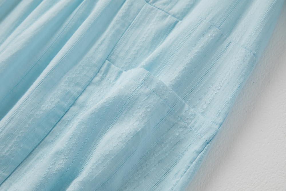 Crafted from 100% cotton, this dress offers a fabric that is not only exceptionally soft but also remarkably skin-friendly, making it ideal for warm weather wear.The cotton fibers allow our skin to breathe naturally, which helps prevent overheating and discomfort during long summer days. Additionally, the polyester inner lining enhances opacity without compromising breathability, ensuring that the dress maintains modesty while still feeling airy and light. This thoughtful combination of materials strikes a perfect balance between comfort and practicality, especially for those seeking easy, everyday wear.