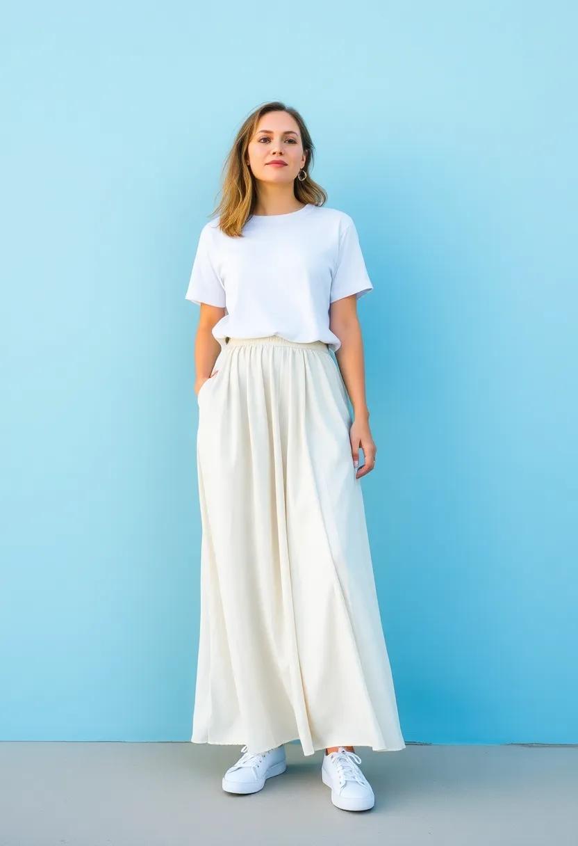 Everyday Casual: Pairing Maxi Skirts with T-Shirts and Sneakers for Effortless Chic