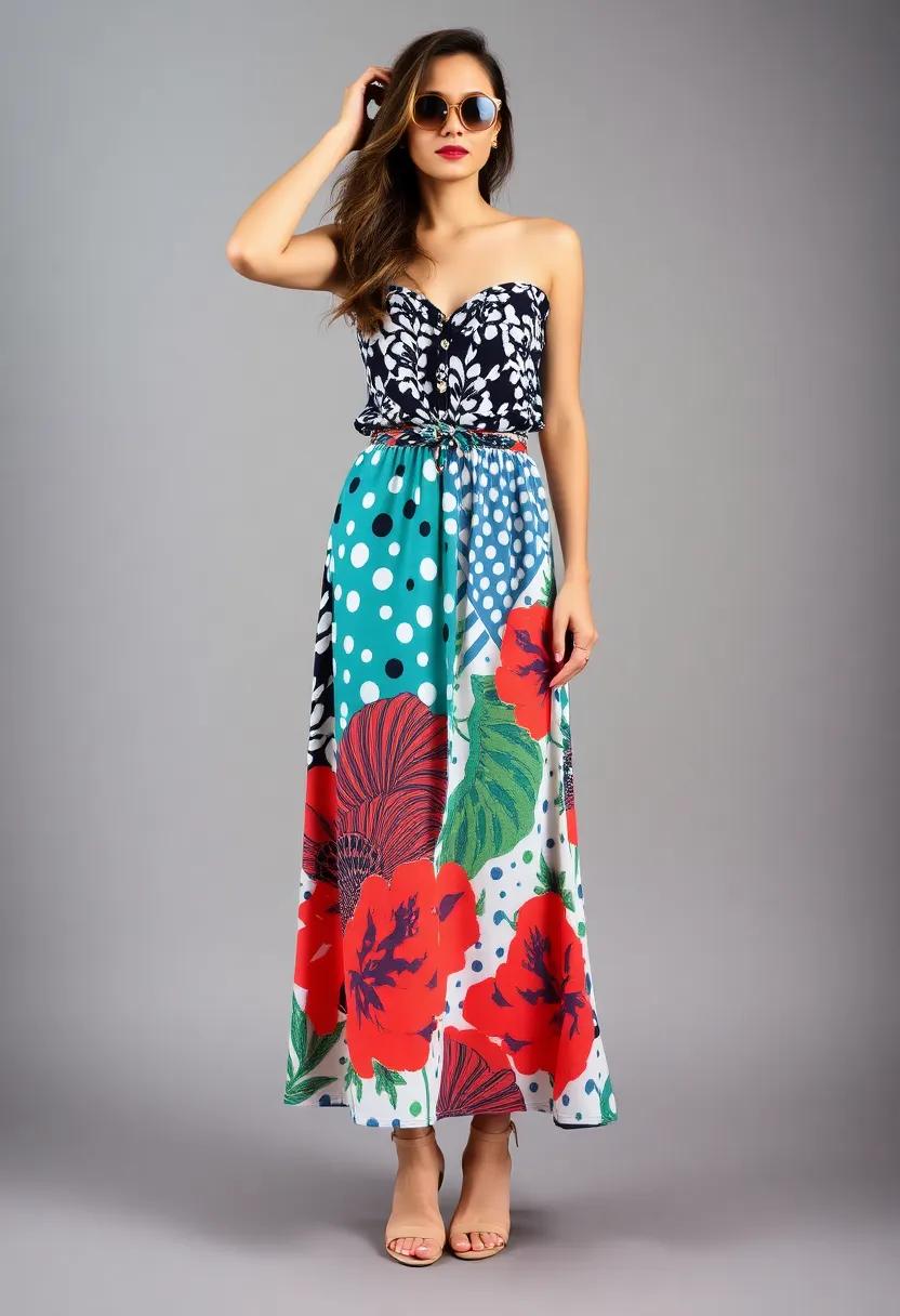 - Geometric Shapes: Pair a geometric print maxi with a tiny polka dot blouse. Ensure that the colors match or complement each other for a cohesive style.