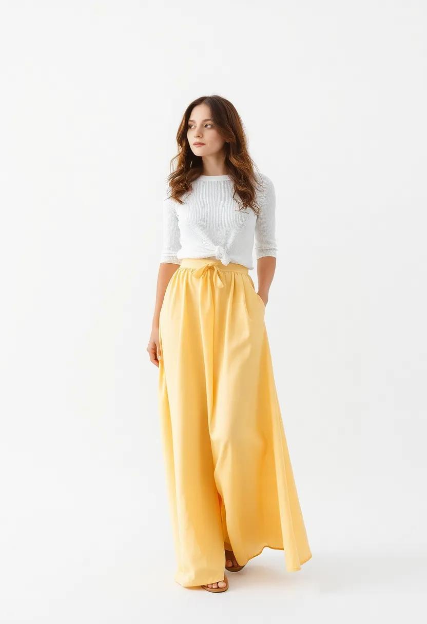 - bright Yellow Maxi: pair with a crisp white blouse for a fresh summer look.