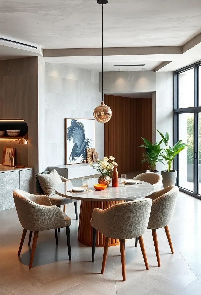When space is at a premium, the shape of your dining table can make all the difference. Round tables are a fantastic choice, as their curved edges encourage conversation and intimacy while also allowing for more flexible seating arrangements. They invite a dynamic flow, making it easy to navigate around them in tight quarters. Another appealing option is the oval table,which offers the elegance of a rectangular form while softening corners. This shape not only maximizes seating capacity but also enhances the aesthetics, creating a modern, airy vibe in your dining area.