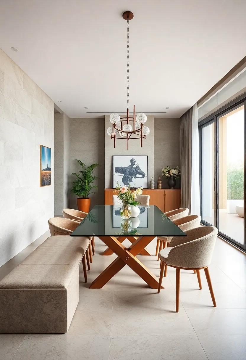| Rectangular Glass Table | Offers ample surface area for dining and gatherings while maintaining a light feel. |