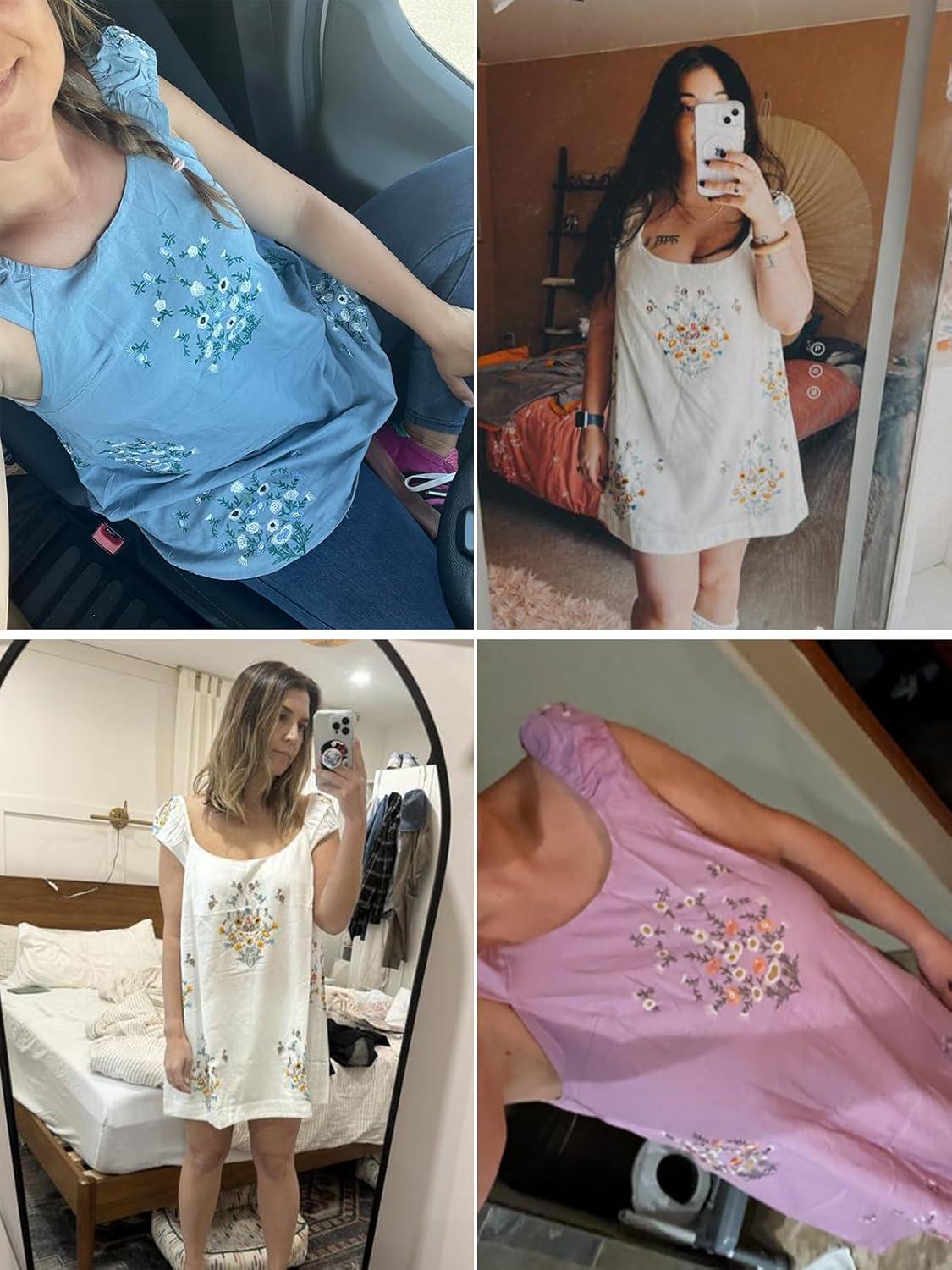 You ⁤bring it​ against your body out of habit, smoothing the bodice ⁣with the heel of ⁣your hand and tugging once⁢ at a seam to see how it will hang. The embroidered flowers press faintly ‍against your ​palm; they’re tactile rather than slick. As you shift it from ‌side​ to side​ the silhouette softens and the skirt ⁤teases out, which tends to ​reinforce that first summer impression—light, informal, and made to move⁢ around rather than hold a rigid line.