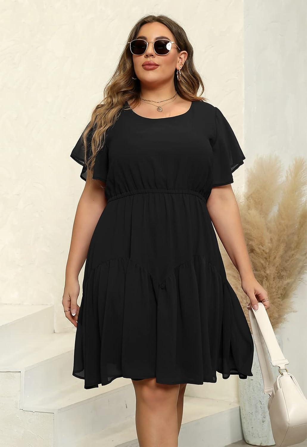 this dress strikes a splendid balance between comfort and style, making it a versatile addition to any curvy woman’s wardrobe. The stretchy empire waistline and scoop neckline provide ample chest coverage while flattering the figure beautifully. The fluttering ruffle sleeves add a delicate, flowy touch that moves gracefully with every step. Perfect for warm weather, it pairs effortlessly with everything from sandals and flats to heels, and can even be layered with leggings and a denim jacket when temperatures drop. Whether dressing up for a party or keeping it casual for errands, it adapts to a variety of occasions with ease.