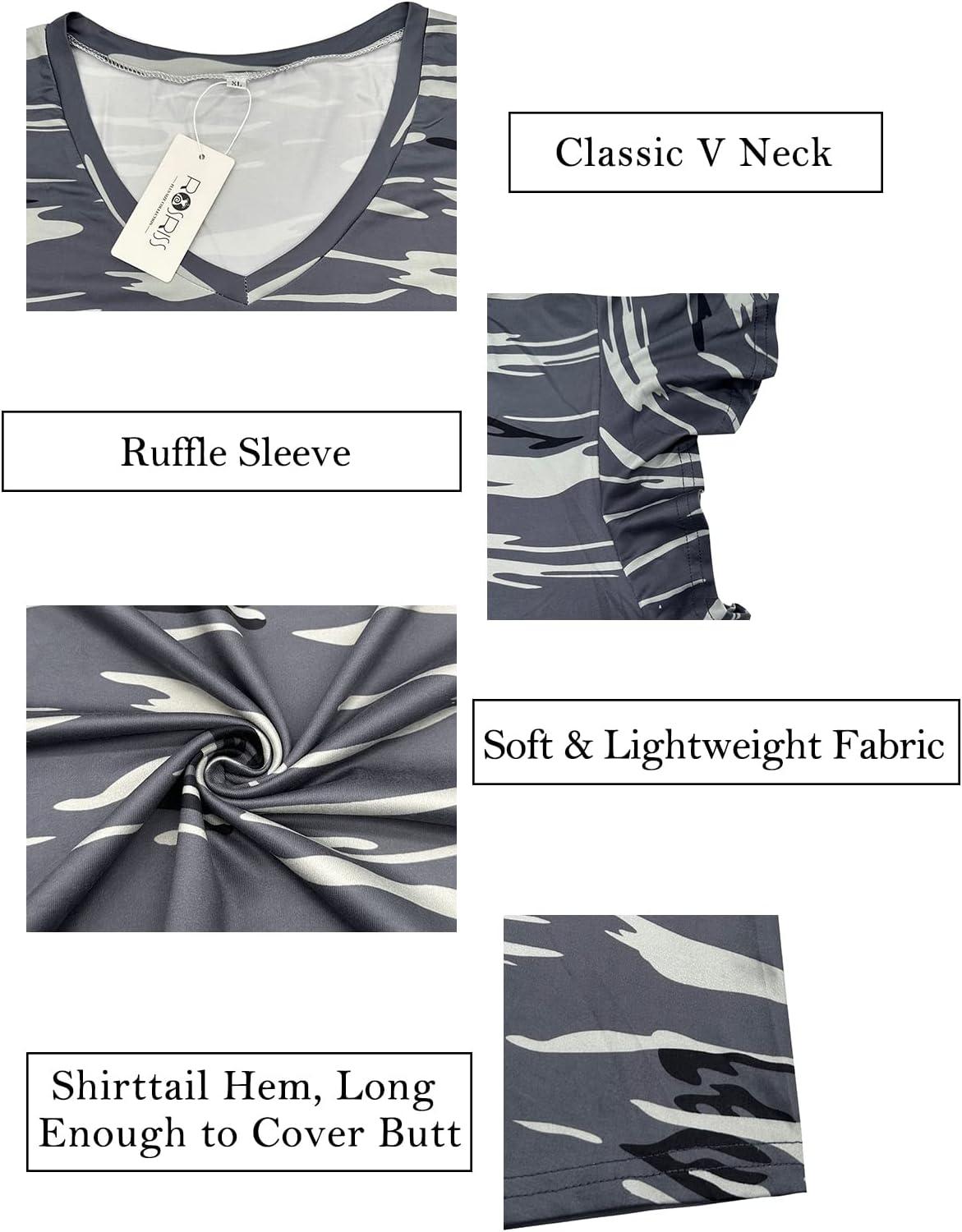 These tops strike a great balance between comfort and style,making them an excellent choice for casual summer wear. the lightweight fabric combined with the flattering V-neck and ruffled short sleeves adds a touch of femininity without compromising on breathability.We especially appreciate how the tunic length offers versatility, allowing us to pair it effortlessly with leggings or jeans.The fit is designed thoughtfully to accommodate plus-size figures, providing both ease of movement and a graceful silhouette.