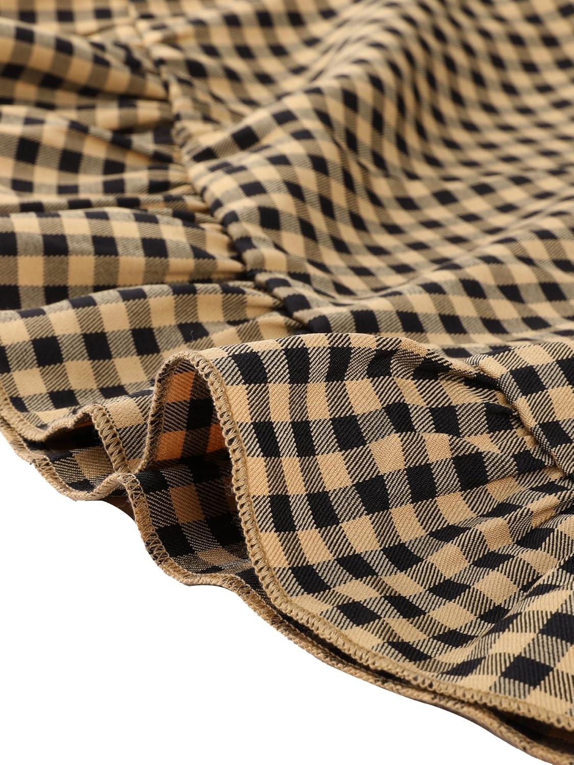 We found this mini dress to be incredibly versatile for both casual outings and more polished, semi-formal events. The lightweight woven fabric keeps us comfortable on warmer days, while the charming gingham pattern adds a timeless touch that never feels overdone. The ruffled trim and puff sleeves enhance its playful vibe, making it perfect for daytime gatherings, picnics, or casual brunches. Pairing it with sandals or sneakers creates a laid-back look that’s effortless yet stylish.