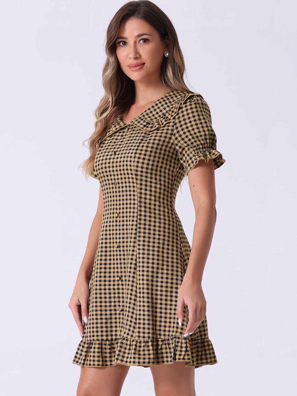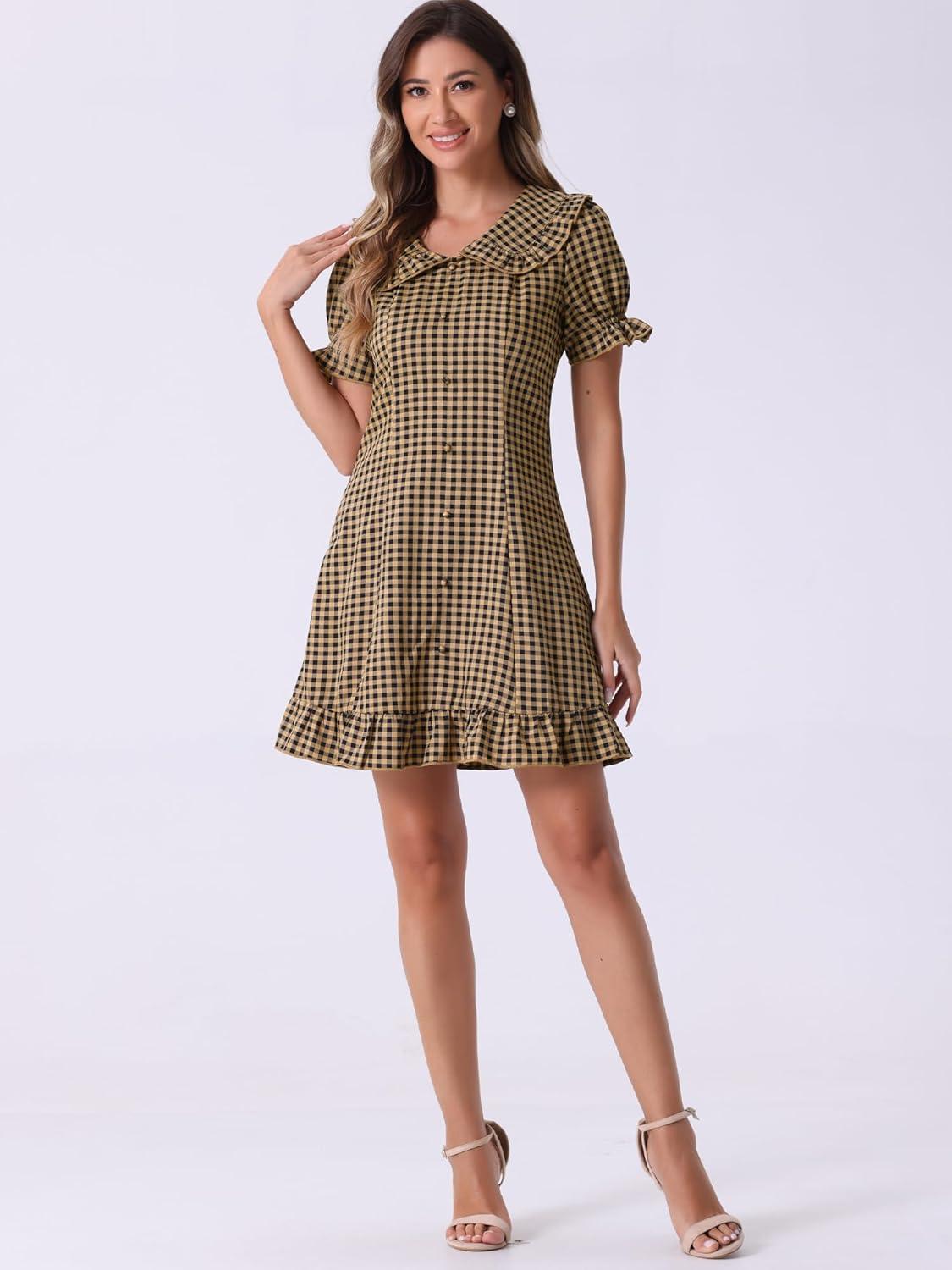 the Allegra K Women’s Gingham Checks Ruffled Peter Pan Collar Mini Dress offers a charming blend of playful design and casual comfort. Its lightweight fabric and sweet details like the ruffled trim and puff sleeves make it a delightful choice for warm-weather outings.While customer reviews show a mix of experiences, the dress maintains a solid appeal for those who love a flirty, vintage-inspired look without sacrificing ease. Whether you’re stepping out for a casual brunch or a sunny day stroll, this mini dress brings a breezy, feminine touch to your wardrobe.If you’re curious to see how it might fit into your style, feel free to explore more and decide for yourself.