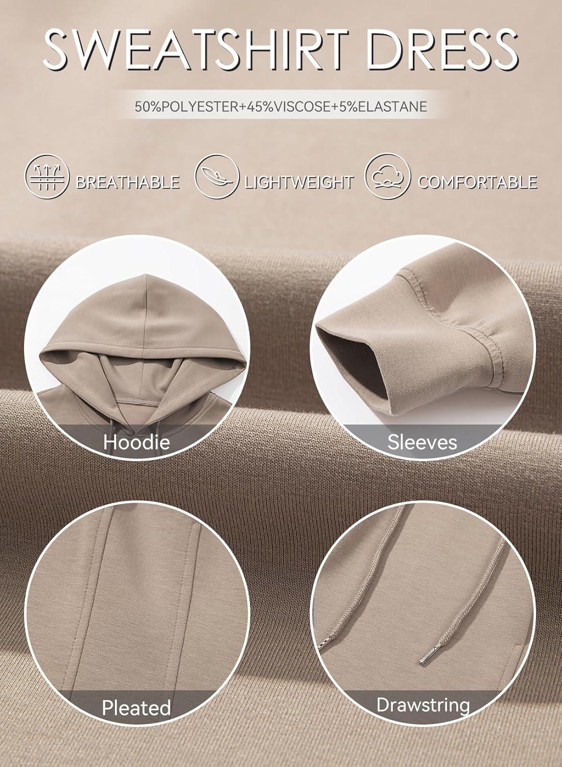 When it comes to durability, this hoodie dress impresses us with its sturdy construction and thoughtful design. The fabric holds up well against regular wear and washing, maintaining its shape and softness even after multiple cycles. the pleats retain their structure nicely, thanks to the quality stitching and material choice. We appreciate how the long sleeves and drawstring details are securely sewn, showing no signs of fraying or loosening over time. this makes it a reliable option for fall and winter casual wear, providing both comfort and resilience.