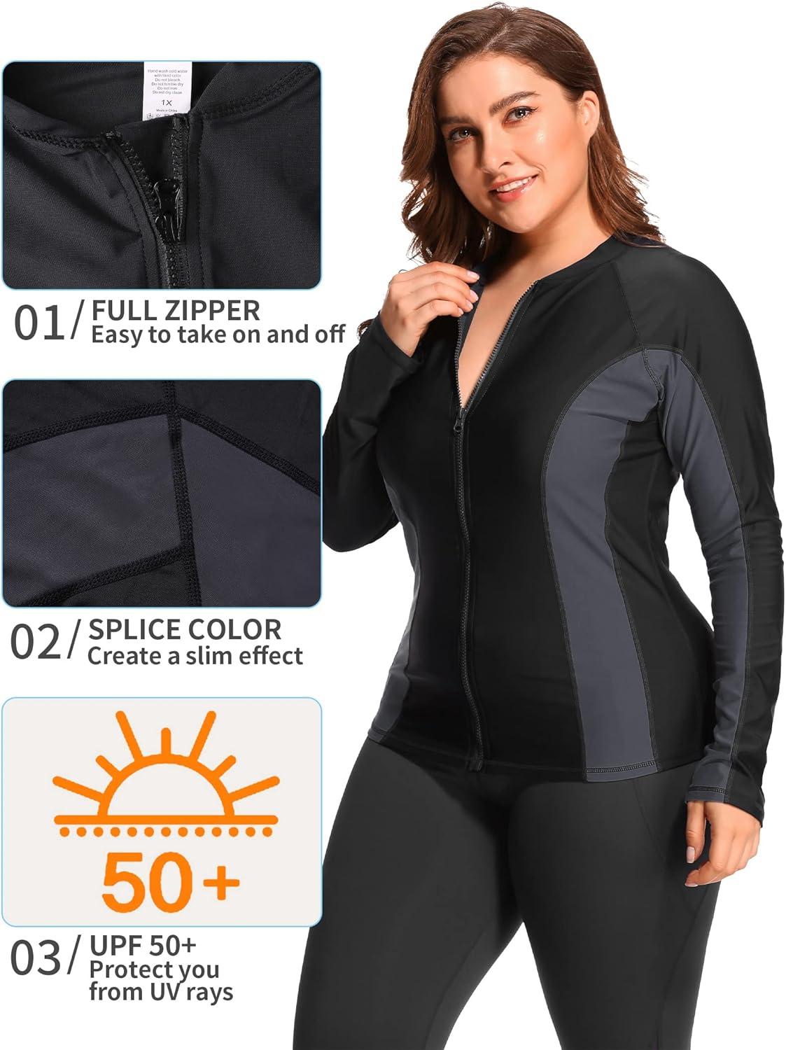 After thoroughly testing this long sleeve rash guard, we appreciate its balance of comfort, style, and function. The fabric feels soft yet durable, offering excellent UV protection for extended beach days or poolside lounging. The zipper detail adds practicality,making it easier to put on and take off without sacrificing the sleek fit designed specifically for plus sizes. We also noticed the color options provide a fresh take with gradient designs, making it a versatile choice for various swimwear looks.For those seeking a modest yet fashionable swim shirt, this option certainly checks the boxes.
