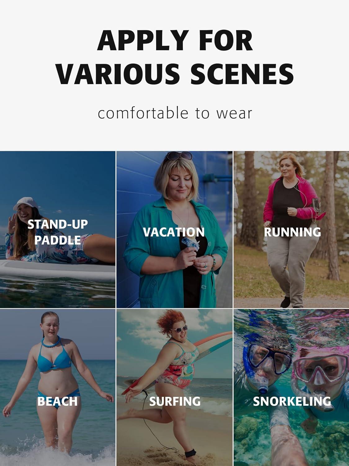 When it comes to swimwear tailored for plus sizes, this top truly stands out for its thoughtful design and practical fit. The long sleeves and zipper front provide adjustable coverage, allowing us to customize comfort without sacrificing style. The stretch fabric hugs curves gently, offering support without feeling restrictive, which is especially vital for longer beach or pool days. We’ve noticed that the material’s blend is both lightweight and breathable, minimizing moisture retention and preventing the uncomfortable, clingy sensation we sometimes experience with other rash guards.