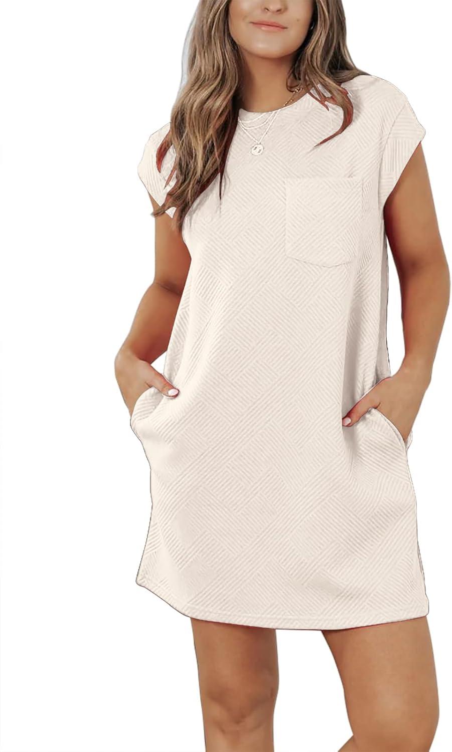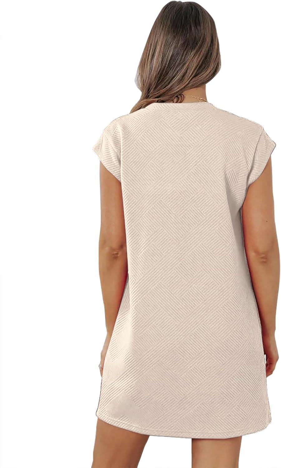 Overview of the Womens⁣ Casual Crewneck Cap Sleeve Textured mini ⁢Tshirt Shift dress with Pockets