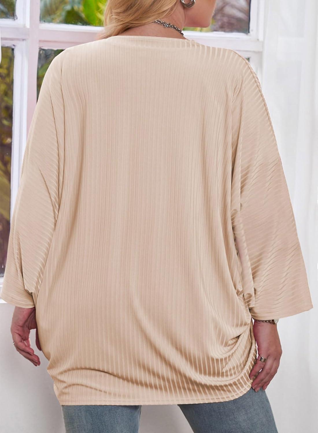 | 3/4 Sleeve Ruched Kimono style | Adds subtle structure and keeps outfit fresh |