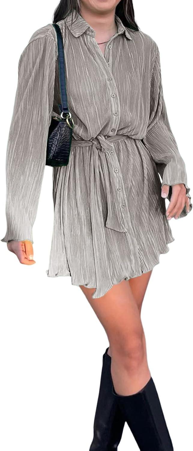 Explore the LYANER Pleated Shirt Dress with Belt on Amazon