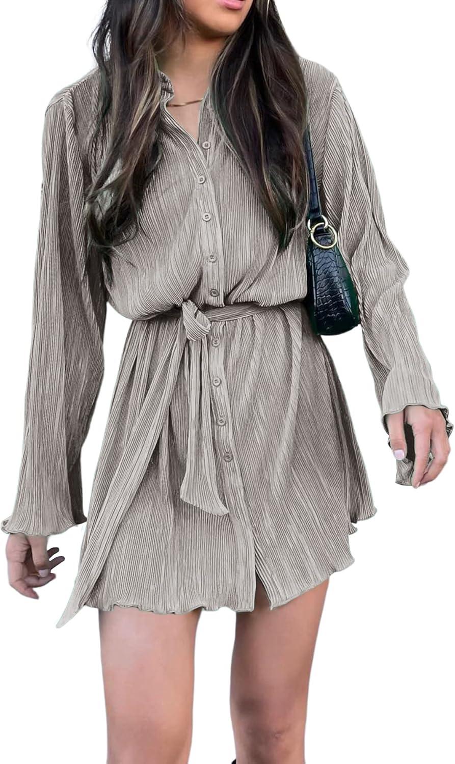 From ​the moment we unboxed⁣ this mini⁤ shirt dress, it was clear that⁣ attention to detail was a priority in its ‍design. The pleated pattern gives ​it a playful yet elegant texture, while the button-down ⁣front combined with the structured collar and V-neckline offers a timeless ‍silhouette. The included belt adds a flattering cinch​ at the waist, ⁣accommodating various body shapes for a customized fit. The⁣ long sleeves end with subtle cuffs, making it suitable for both casual outings and more polished occasions. Its lightweight fabric feels breathable and pleasant,perfect for transitional seasons.