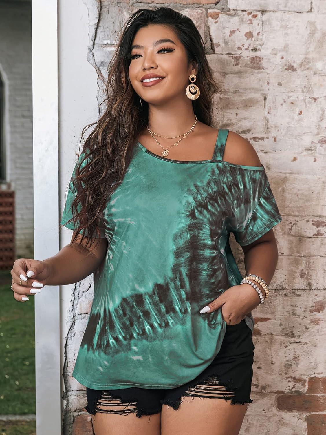We found the fabric remarkably soft and skin-friendly, offering a comfortable fit throughout the day. The loose, asymmetrical cut and cold shoulder design allow for excellent breathability and movement, which is often a challenge for plus size tops. With short sleeves that provide a relaxed arm fit, this tee strikes a balance between style and comfort without sacrificing either. The tie-dye pattern adds visual interest without overwhelming the silhouette, making it a flattering choice for casual outings or relaxed office settings.