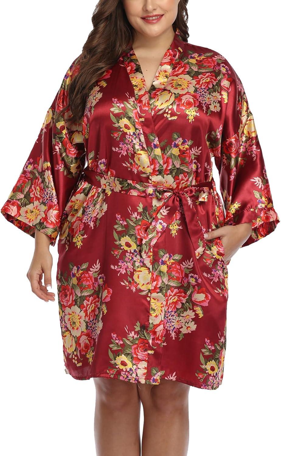overview of the Women’s plus Size Floral Satin Kimono Robe Experience