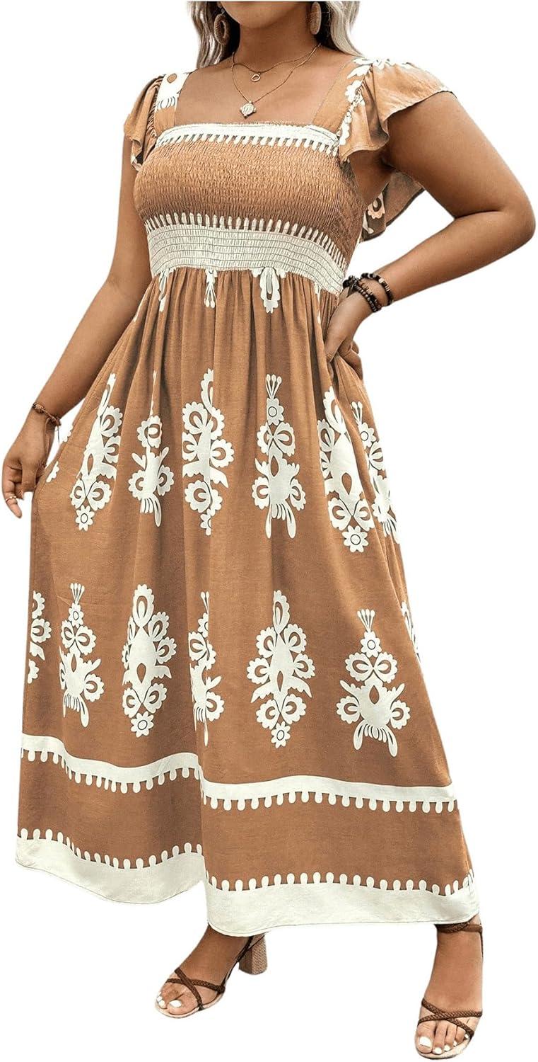 When it comes to comfort,this dress truly shines in its plus size design. The smocked bodice offers a stretchy, forgiving fit that adapts beautifully to different body shapes, hugging us gently without feeling restrictive. The square neckline combined with the flutter sleeves adds an airy, light touch that enhances mobility and breathability, perfect for extended wear during warm days or relaxed​ evenings. The flowy maxi‌ length not only complements a boho style but also ‍allows for effortless movement, making the dress feel weightless on our skin.