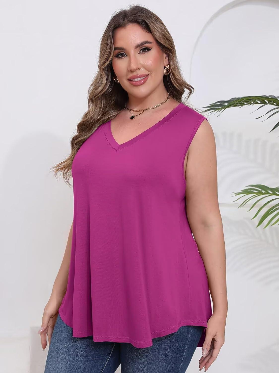 What truly sets these sleeveless tunic shirts apart is their thoughtful loose fit silhouette paired with a flattering V-neckline. This combination not only enhances comfort for all-day wear but also adds a touch of elegance to a casual summer outfit. The flowy design allows for effortless movement and breathability, perfect for warmer days, while the ultra-soft fabric feels gentle against the skin, maximizing comfort without sacrificing style. These features come together to create a piece that caters wonderfully to plus size women looking for flattering yet relaxed wardrobe staples.