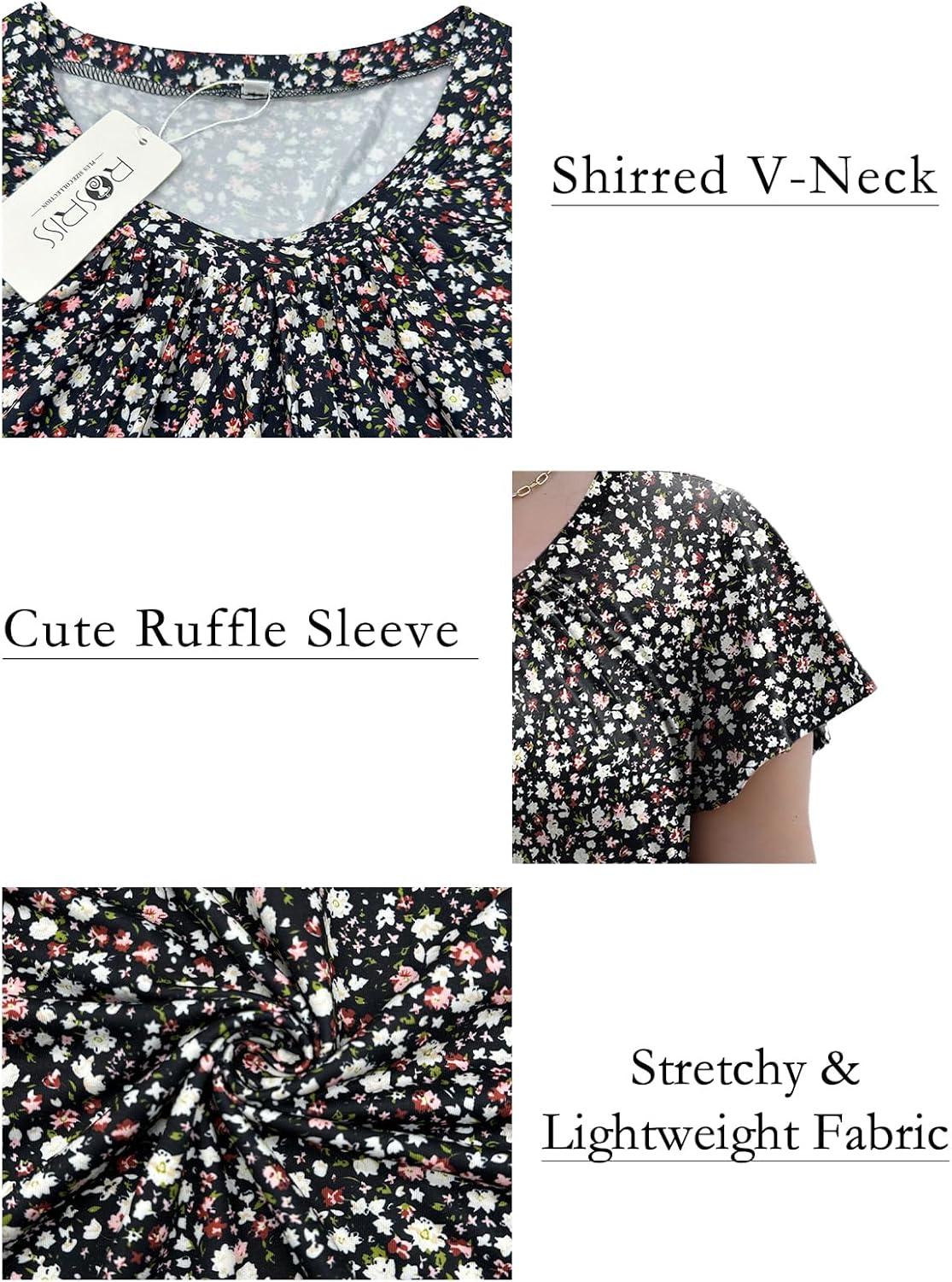 Our experience with these summer tops has been notably positive, especially appreciating their thoughtful design tailored for plus-size wearers. The lightweight fabric offers breathable comfort, perfect for warm weather, while the ruffle short sleeves add a delicate, feminine touch without feeling bulky. the shirred V-neck enhances the fit,giving a flattering silhouette that comfortably accommodates various body shapes. Additionally, the loose fit keeps the tops flowing nicely without clinging too tightly, wich is essential for all-day wear.