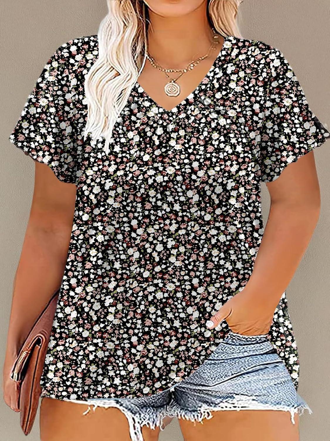 The ruffle short sleeves are a defining feature that beautifully balances style with functionality. Their delicate, fluttery design adds a touch of femininity and sophistication to the overall look, turning a simple summer top into an effortlessly chic piece. Unlike basic sleeves, these ruffles create subtle volume without overwhelming the silhouette, making it flattering for a plus-size figure. The shirred V-neck combined with the ruffle sleeves accentuates the neckline and shoulders, creating a graceful flow that enhances the wearer’s confidence and poise.
