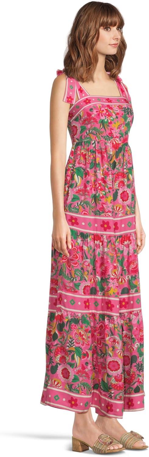 The dress’s elegant yet playful design allows us to style it effortlessly for a wide array of occasions. The adjustable bow ties on the shoulders create a customizable fit that complements different body shapes, while the square neckline adds a refined and timeless appeal. Whether paired with sandals and a sunhat for a relaxed beach day or dressed up with heels and statement jewelry for a summer evening party, this piece adapts with ease. Its vibrant floral print brightens any setting, making it a perfect pick for both casual city strolls and more festive outdoor celebrations.