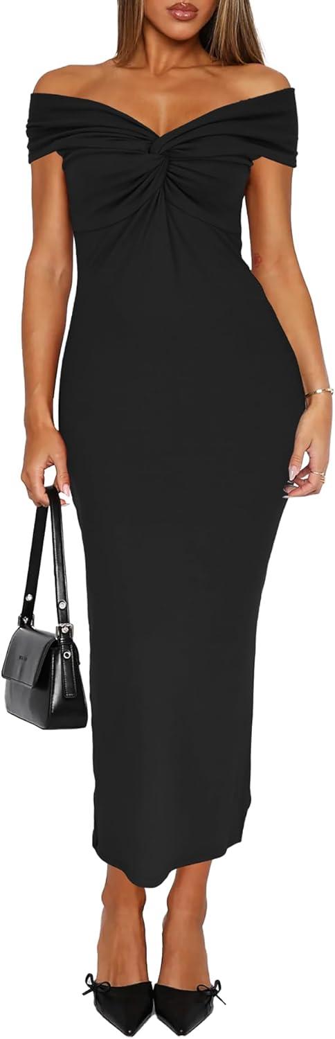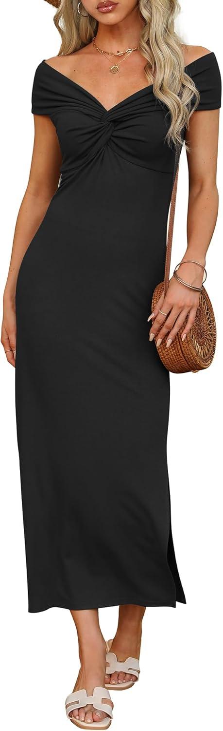 In terms of versatility, this dress truly shines. The off-shoulder sweetheart neckline with the twist knot front detail creates a refined silhouette that effortlessly shifts from casual daytime outings to sophisticated evening events. Its slim fit hugs the body gracefully, accentuating curves without feeling restrictive, while the subtle side slit adds a touch of movement and allure. We found it easy to pair with a variety of accessories and layers, making it a go-to piece whether styled with flat sandals for a relaxed look or heeled shoes and statement jewelry for a more elegant appearance.