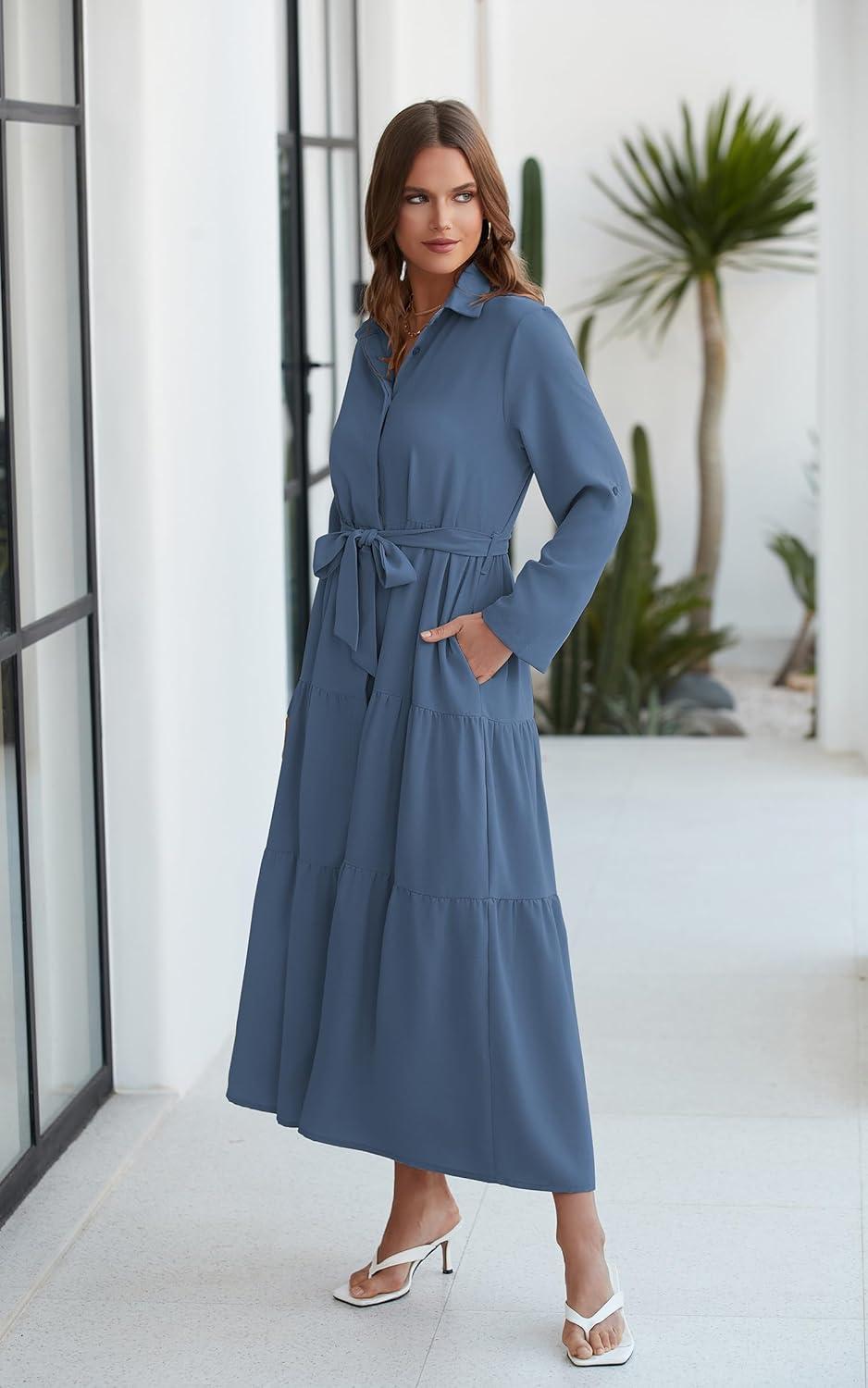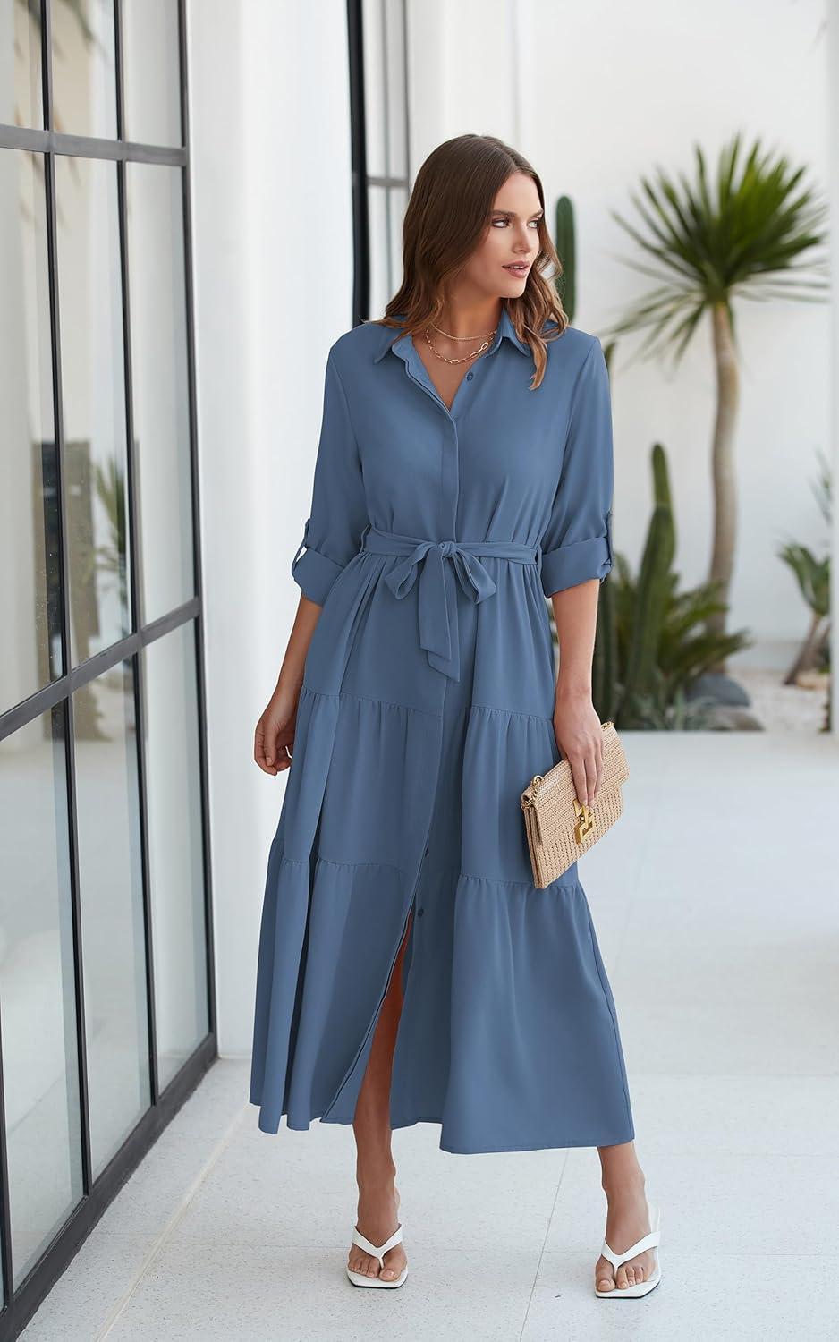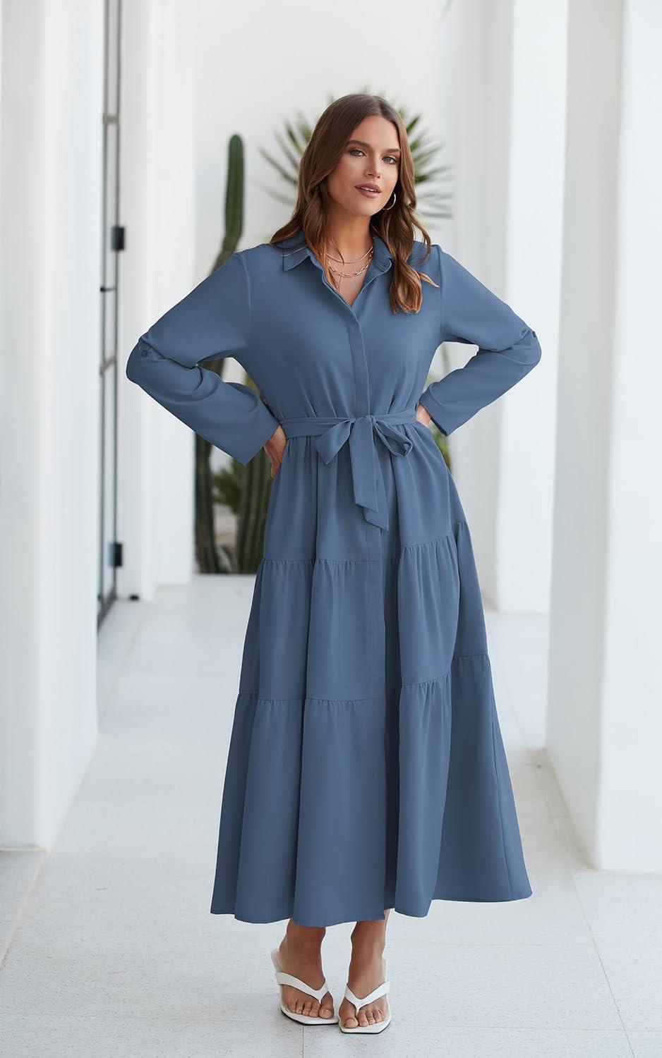 Having spent several weeks wearing the ECOWISH Women’s maxi‌ shirt Dress, we found it strikes a thoughtful balance between comfort and versatility that suits a variety of occasions. ⁤From busy workdays where pockets and a belt lend practicality and polish, to relaxed weekends where its flowy silhouette and breathable cotton fabric⁢ keep‍ things easy and breezy, this dress adapts effortlessly. The tiered design and roll-up ⁣sleeves add subtle style details without overwhelming the classic button-down‌ structure, making it a​ reliable go-to piece for seasonal transitions. Whether paired with heels or⁢ flats, the dress aligns well with our busy lifestyles, proving itself ‌not just fashionable but genuinely functional.