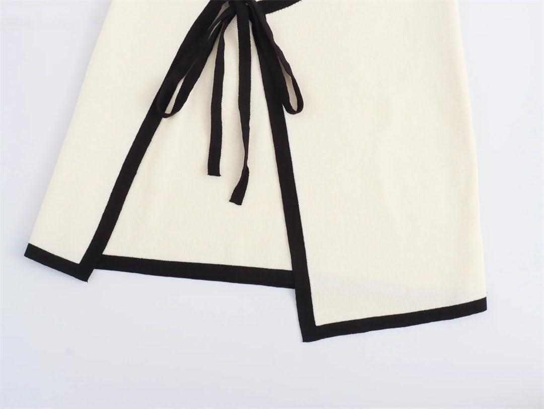 The design of this dress truly stands out through its carefully tailored spliced details and elegant lace-up accents. The melding of solid fabric panels creates a subtle yet striking contrast that enhances the overall silhouette without overwhelming it. These spliced sections provide a elegant form-fitting structure, especially around the waist, which flatters the figure while maintaining a polished look. The lace-up feature adds a delicate, feminine touch, transforming what could be a simple sleeveless dress into a captivating statement piece. This combination of elements achieves a perfect balance between casual elegance and modern style.
