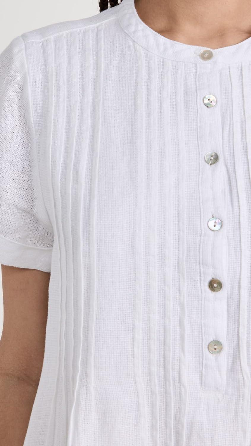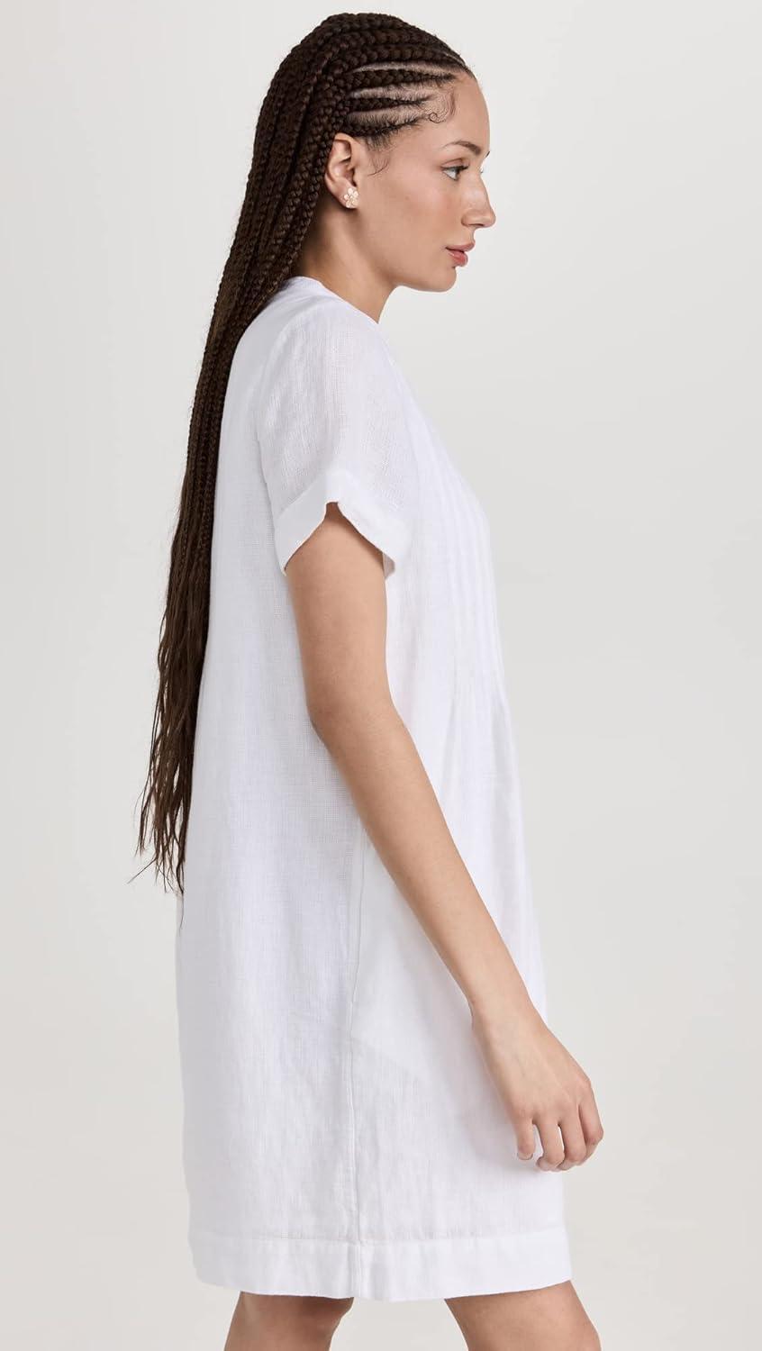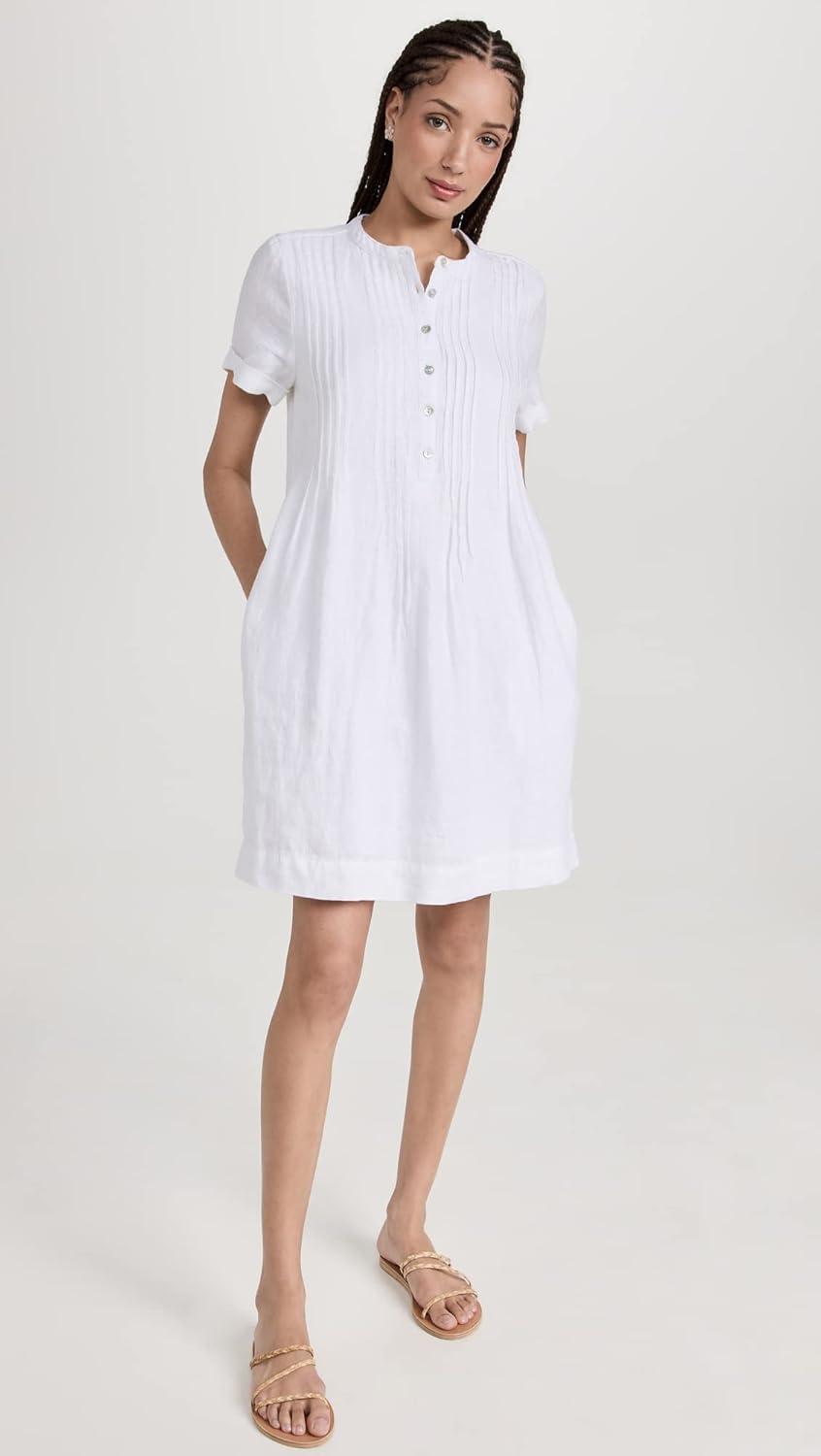 We found this dress to be an exceptionally versatile addition to any warm-weather wardrobe. The fabric,a soft and lightweight basketweave linen,feels breathable and comfortable right from the first wear.Its delicate pintuck details at the neck and shoulders add a touch of feminine charm, allowing the fabric to drape effortlessly without clinging. The fit is flattering without being restrictive,making it an ideal choice for those who want ease and style combined. Additionally, the hidden side pockets are a practical bonus-perfect for stashing small essentials on the go without breaking the silhouette.