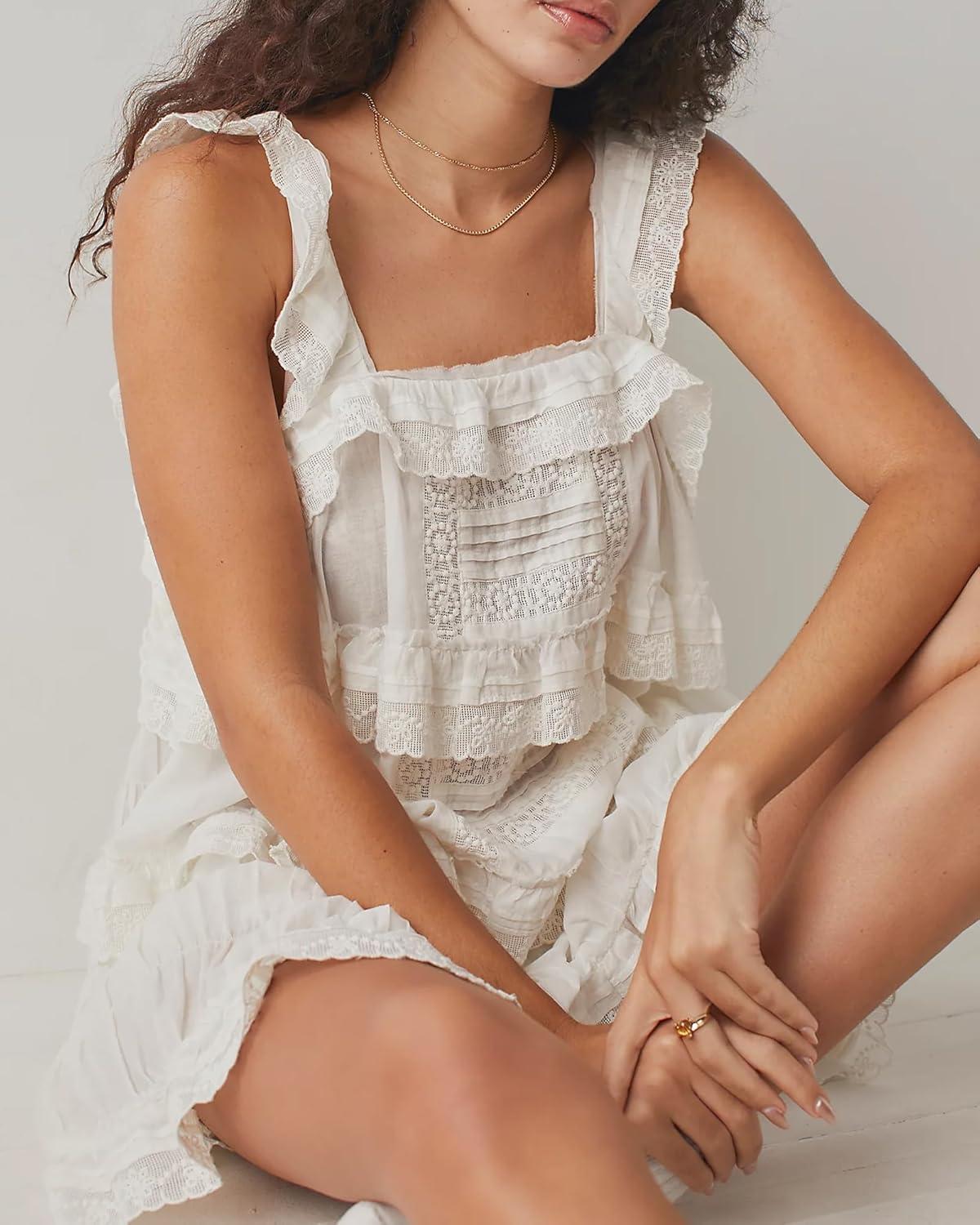 | Wide leg holes and flowy A-line hem provide excellent airflow and ease of movement. | Square neckline and lace detailing might feel too delicate or “dressy” for ultra-casual occasions. |