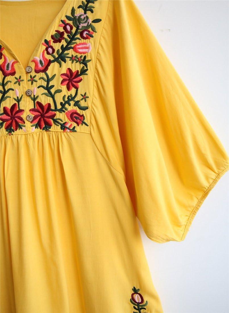 We recently had the chance to try out the Kafeimali Summer Dress V Neck Mexican Embroidered Peasant Women’s Dressy​ Top, and it caught our attention with its charming boho vibe and vibrant floral embroidery. Made from lightweight cotton, the fabric feels‌ soft ⁣and breathable-ideal for staying pleasant during hot summer​ days. The flattering butterfly sleeves and modest, classy round neckline give it a ⁣casual yet elegant appeal, making it versatile enough to pair with shorts⁢ or leggings. After wearing it a few times,we appreciated how it balances both style and comfort,perfect for a relaxed summer outing or casual school days.