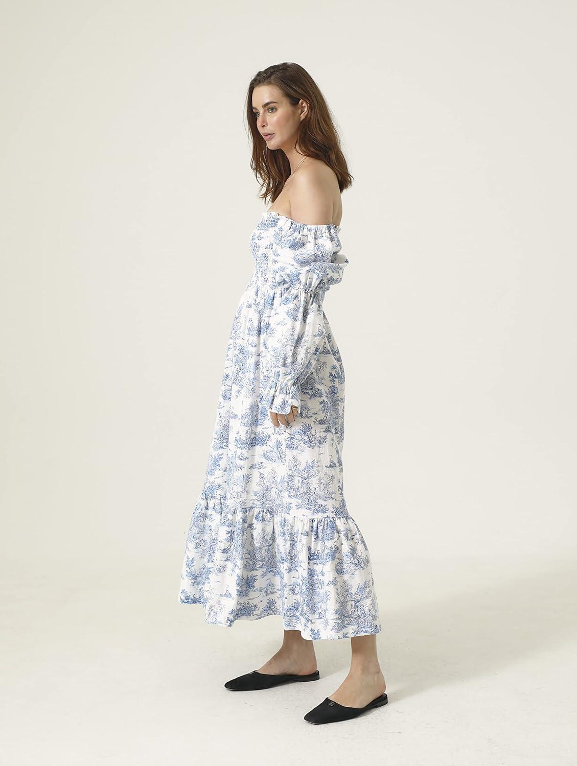 This dress truly shines in casual settings thanks to its breezy fabric blend, combining linen and cotton that keeps us comfortable throughout the day. The off-shoulder design paired with a delicate floral pattern gives a laid-back yet elegant vibe, perfect for brunches, park strolls, or casual meetups. Styling it is easy; we paired it with simple sandals and a straw hat for an effortless summer look.On chillier days, layering a light denim jacket and ankle boots enhanced its versatility, making it suitable for cooler evenings without compromising the dress’s airy feel.