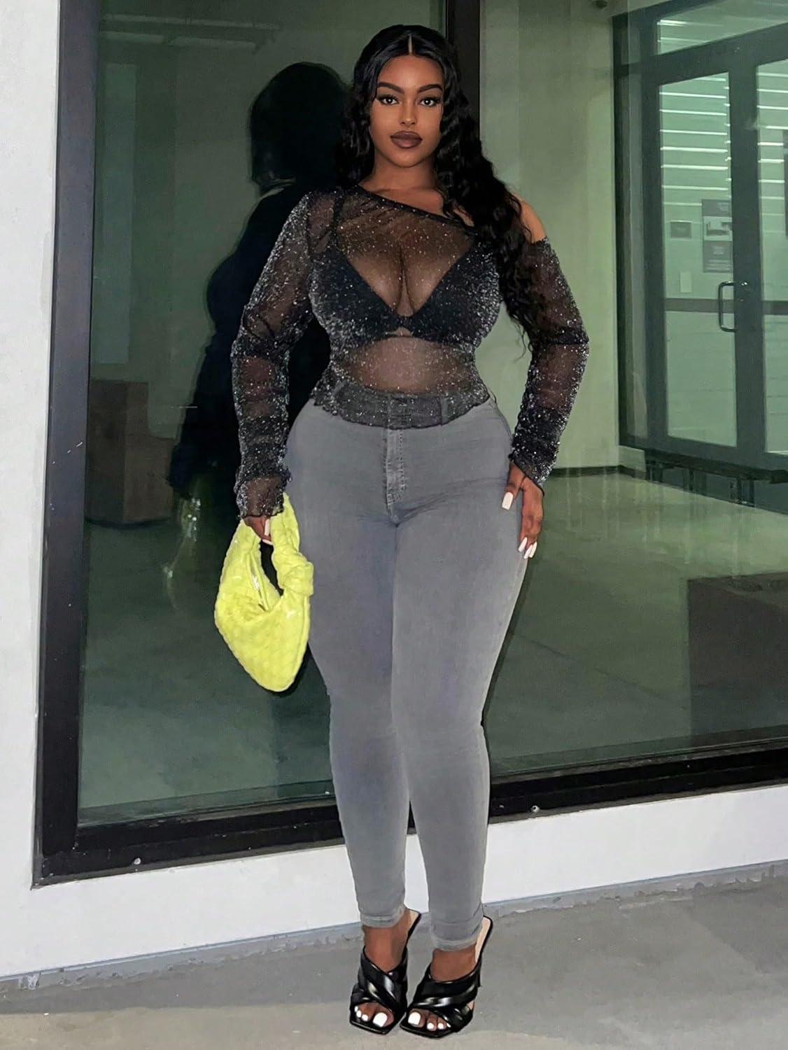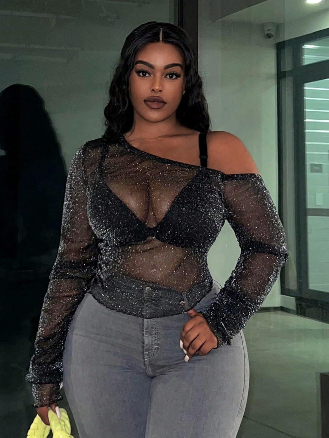 From the moment we slipped into this sheer, sparkly off-the-shoulder top, it was clear that⁤ it’s designed to‍ make a statement. The fabric is delightfully lightweight and breathable, ​making it a great pick for evening‌ outings or special occasions when ‍you want to add a bit of shimmer to your look. ⁤Its⁤ long sleeves provide a nice balance to the otherwise daring, see-through ​design, and the off-the-shoulder cut effortlessly highlights the neckline and collarbones without feeling restrictive. We appreciated⁢ how the stretch fabric accommodated⁣ our curves comfortably,showing that this piece is truly made with⁤ plus-size figures​ in mind.